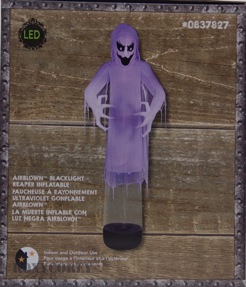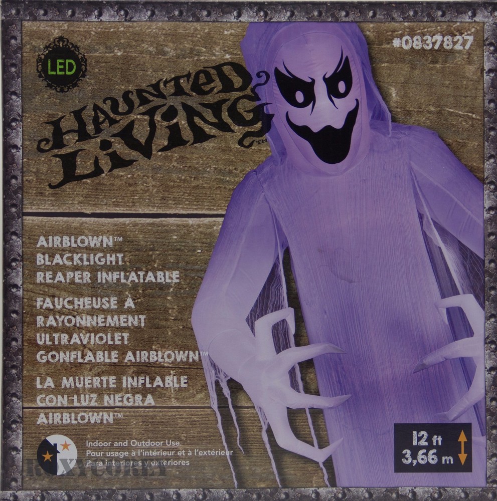 DESCRIPTION: Halloween Gemmy 12-ft x 4.36-ft Lighted Reaper Airblown Inflatable Lighted reaper wears tattered guaze cloth that hangs over a see through bottom, so it looks like he's floating toward his next victim Short Circuit blacklight effect enhances the frightening look 5 ft cord provides accessibility from your yard to a power source Indoor and outdoor use New in box RETURNS: Your satisfaction is important. Please contact us via eBay regarding any problems before leaving negative feedback. Any defects, damages, or material differences with your item, must be reported to us within 7 days of receipt of the item or 30 days from date of shipment Returned merchandise must be postmarked within 30 days of the shipment notification Return shipping will be paid by the buyer We will contact you within 14 days after receiving the item Refund will be given as money back or exchange if available