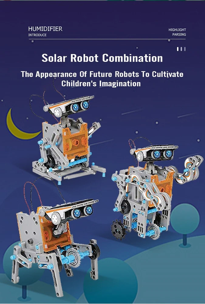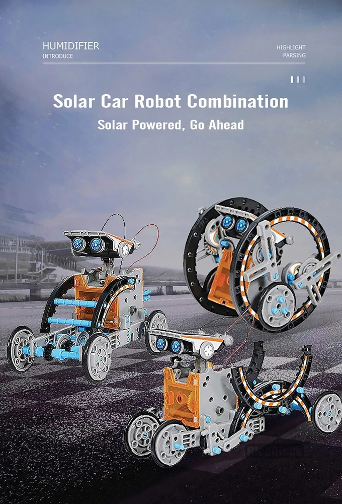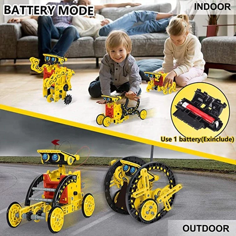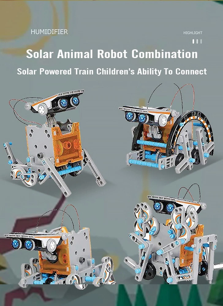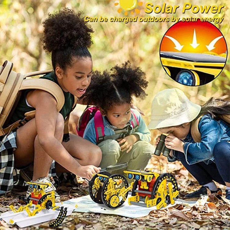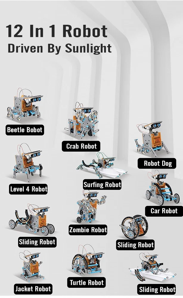 12-in-1 Solar Robot Toy Kit - STEM Educational Toy for Kids 12 Robot Designs : Build 12 different robots that can move on land or water. With two complexity levels, the kit is perfect for children of all ages, from beginners to advanced builders. It's an excellent introduction to robotics for kids. No Batteries Needed : The kit is powered by solar energy. The included solar panel converts sunlight into electric energy, which drives the robot's motor and gears. This eco-friendly design teaches kids about renewable energy in a fun and practical way. STEM Education Support : This science toy helps children learn how to build robots powered by solar energy, fostering skills like problem-solving, logical thinking, and manual dexterity. It promotes teamwork and collaboration while encouraging a love for STEM subjects. DIY Creation : With 190 easy-to-assemble pieces, children can design and build their own robots. The kit includes detailed instructions for 12 robot designs, making it suitable for kids ages 8-10 and up. It's a perfect way to boost creativity and imagination through hands-on play. Ideal Gift : Made from high-quality, non-toxic ABS plastic, this durable kit is a fantastic gift for birthdays, holidays, STEM activities, or back-to-school fun. It's a great way to encourage learning while having fun! Perfect for inspiring the next generation of engineers, scientists, and innovators!