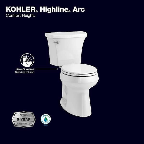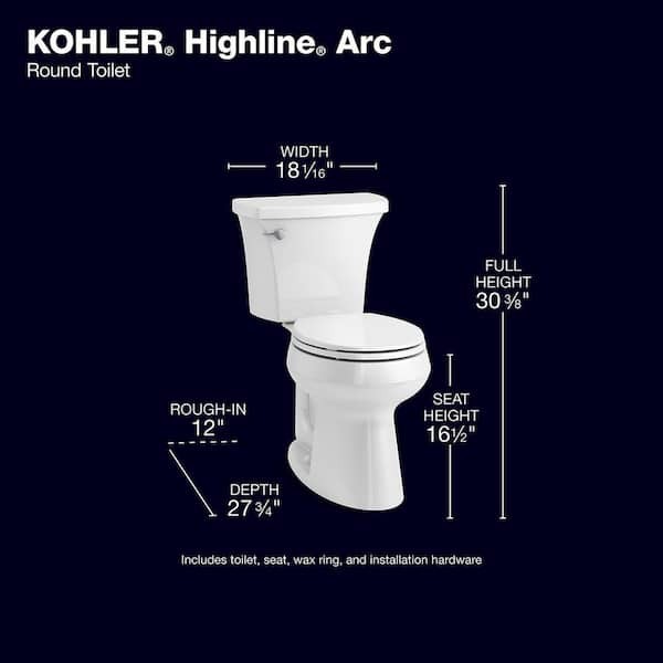 Trusted for years by professionals, Highline toilets are KOHLER bestselling toilet family. A brilliant blend of style and water efficiency, this Highline Arc toilet is distinguished by an elegant flared tank. Coupled with KOHLER powerful canister flush valve, there's no sacrificing performance for design. An innovative 1.28 Gal. flush setting provides significant water savings of up to 16,500 Gal. per year, compared to an old 3.5 Gal. toilet. This Complete Solution package includes everything necessary for installation and is available exclusively at The Home Depot.