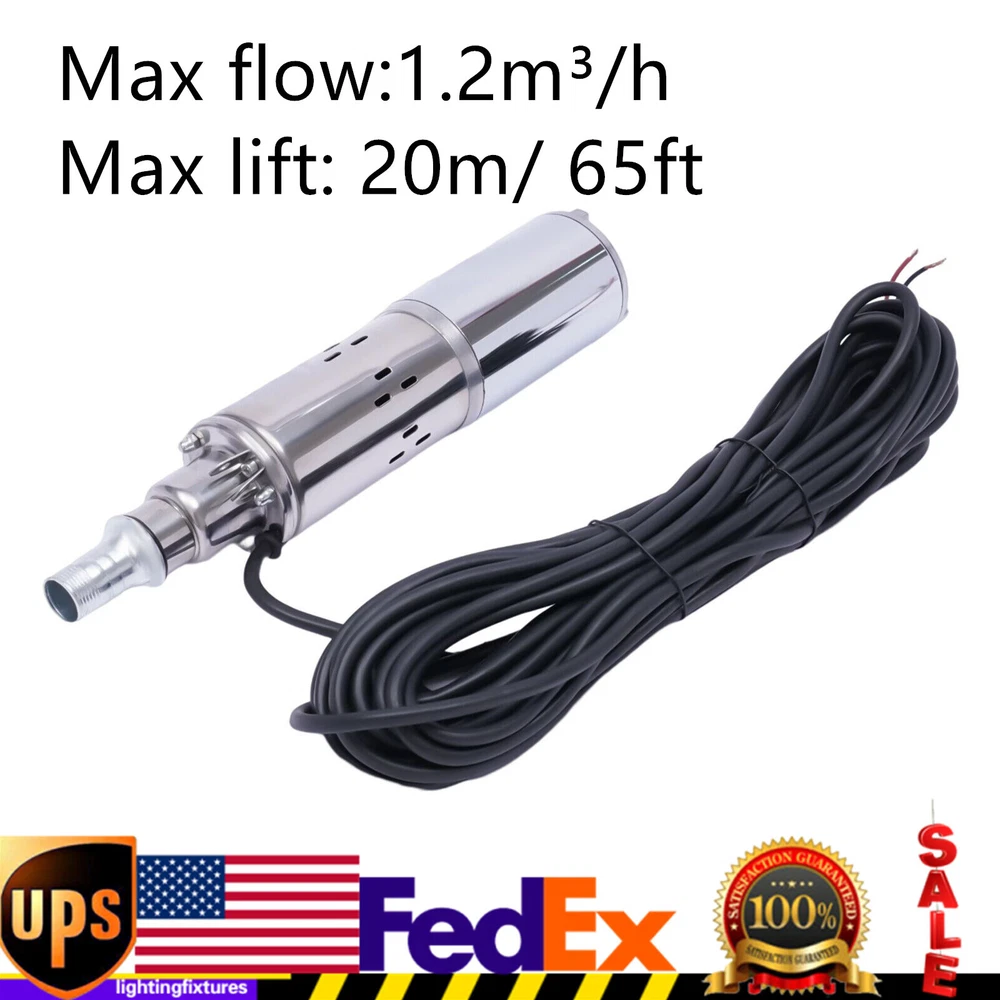 Features - Pure copper motor - Cast steel chassis - Safety insulation - Strong power - DC diving - Good mute effect - Screw Pump: more powerful, fast speed, effectively increase the head flow - This is a non-toxic, non-polluting, noiseless solar water pump - Suitable for using in ships, fishing boats, fish ponds, agricultural irrigation and etc. - It uses car power, energy saving and environmental protection. - High lift, large flow, small size, easy to carry. Specifications 1. Power:180W 2. Voltage:12V DC 3. Max flow:1.2m³/h 4. Max lift: 20m/ 65ft (The Highest Llift,The Lowest Flow Rate) 5. Outlet:25mm 6. Pump diameter:8cm/3.15in Pump length:38cm/15in Package included: 1 x water pump 1.2m³/h Water Pump Submersible Deep Well Water Pump 180W 12V DC Stainless Steel Note: the Normal Use Conditions of This Pump: 1. Voltage Is Matched. 2. the Positive and Negative Poles Are Connected Correctly. If the Pump Does Not Work, Please Check the Following Two Points : (1) Whether the Electricity Is Sufficient. (2) Whether the Positive and Negative Poles Are Connected in Right Way,or the Screw Is Loose. Note: Solar Panel Not Included Features - Pure Copper Motor - Cast Steel Chassis - Safety Insulation - Strong Power - Dc Diving - Good Mute Effect - Screw Pump: More Powerful, Fast Speed, Effectively Increase the Head Flow - This Is a Non-toxic, Non-polluting, Noiseless Solar Water Pump - Suitable for Using in Ships, Fishing Boats, Fish Ponds, Agricultural Irrigation and Etc. - It Uses Car Power, Energy Saving and Environmental Protection. High Lift, Large Flow, Small Size, Easy to Carry. Specifications Material: Stainless Steel (Shell) + Iron (Screws) 1. Power:180w 2. Voltage:12v Dc 3. Max Flow:1.2m³/H 4. Max Lift: 20m/ 65ft (the Highest Llift,the Lowest Flow Rate) 5. Outlet:25mm 6. Pump Diameter:8cm/3.15in Pump Length:38cm/15in Package Included: 1 X Solar Water Pump Note:this Item Should Be Connected to 250w Solar Panels Payment Delivery details Terms of sales About us Contact us Payment We accept ebay payment 。 Fees such as import duties, taxes are not included in the item price or shipping costs. These charges are the buyer's responsibility. Delivery details Shipping: 2-9 working days to: USA Terms of sales We maintain high standards of excellence and strive for hundred percent customer satisfaction. Feedback is very important to us. We hope that you contact us immediately before you give neutral or negative feedback, so that we can address your concerns. It is impossible to address issues if we do not know about them! About us Your satis faction is our ultimate goal. We work hard to earn your trust and future business. Our certified technicians have tested each item before shipping. The unit comes with 1 year limited warranty on all manufacturing defects. a) If you receive a defective item, you may return it or ask for a discount. Please contact us within 14 days after you receive the package. b) What you returned must be intact and in its original packaging as re? u. Customer is responsible for shipping costs of the returned item. c) We will cover the cost of shipping back t with the shipping rate indicated in the registration page. We will send you a new unit or refund the full payment you paid. Thank you. Contact us Business Hour Business Hour: Monday To Friday: 8:30 AM to 5:00 PM (Beijing China time) Due to time zones, our reply to your questions may not be immediately. But within above working time, we will reply your email within 24 hours. If it's non-workdays, please kindly be patient and wait till Monday. Please contact us with ebay message. Please feel free to contact us if you have any questions. Monday To Friday: 8:30 AM to 5:00 PM (Beijing China time) Due to time zones, our reply to your questions may not be immediately. But within above working time, we will reply your email within 24 hours. If it's non-workdays, please kindly be patient and wait till Monday. Please contact us with ebay message. Please feel free to contact us if you have any questions. On Dec 12, 2024 at 20:28:40 PST, seller added the following information: