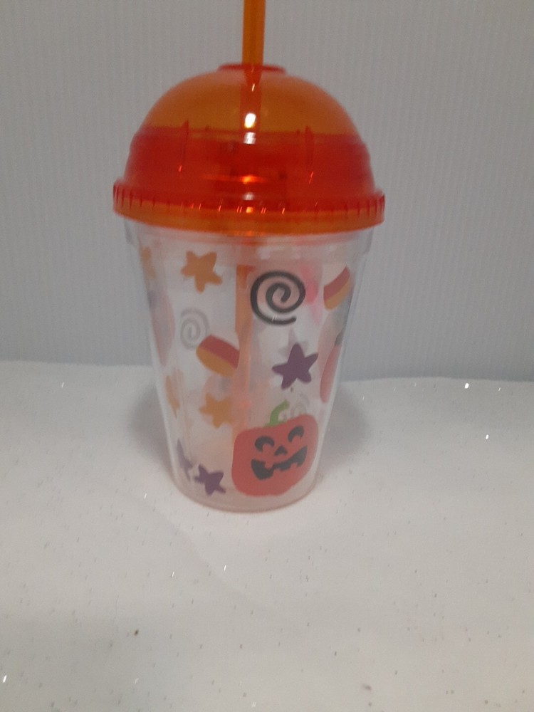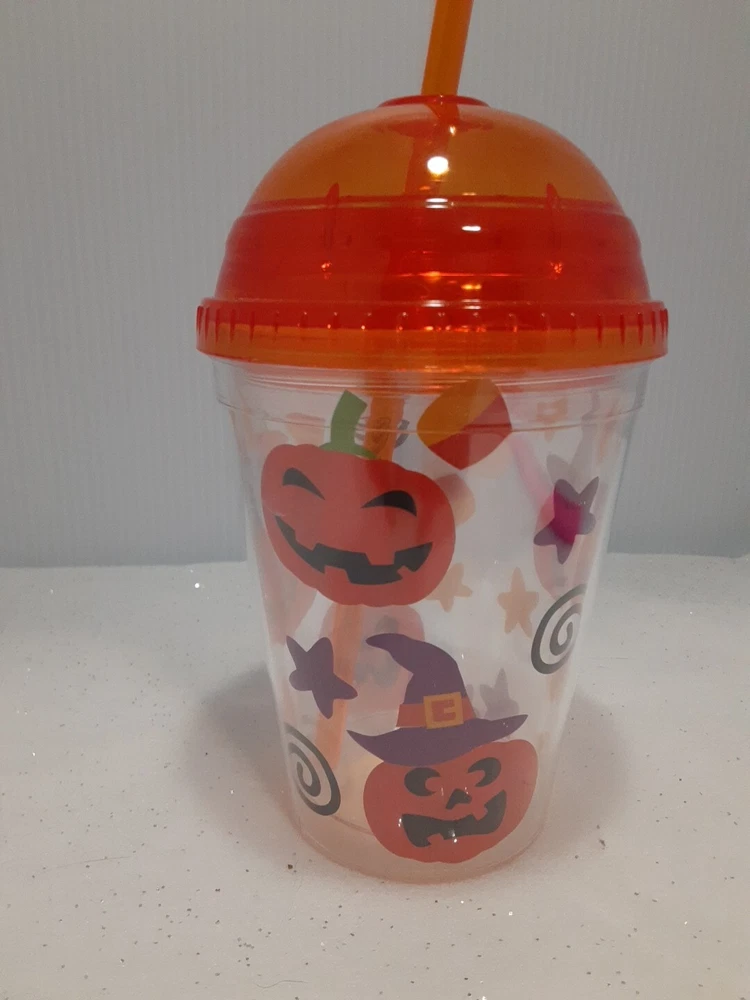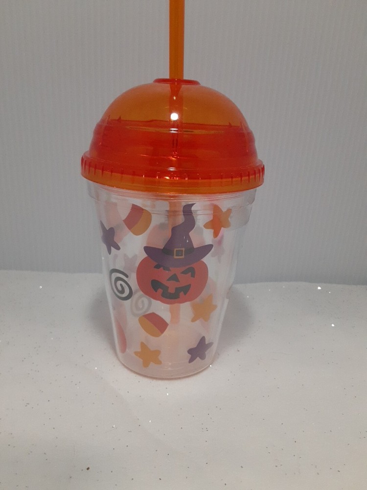 Type:TumblerTheme:HalloweenDepartment:KidsOccasion:HalloweenColor:OrangeBrand:UnbrandedGlassware Type:Drinking GlassSet Includes:Tumbler, StrawMaterial:PlasticFeatures:With Straw, With Lid