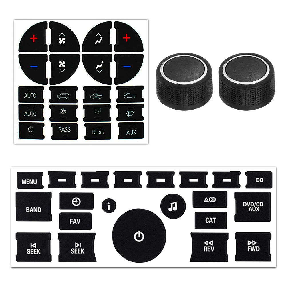 Why choose us? Free Same Day Shipping From US 60 Day Free Return 2 Years Warranty Knob Button Specifications: Type: Replacement Rear Audio Control Knob Material: High Quality ABS Plastic Color: Black and Chrome Size: 23*10mm(Approx.) Fits Rear Radio Feature: According to the original factory specifications Perfect match for the original car. Easy installation. Stable properties, high reliability. Fitment: For 2009-13 Buick Enclave Rear Volume For 2007-11 Cadillac Escalade EXT Rear Volume For 2007-11 Chevy Avalanche Rear Volume 1/2set A/C Climate Control Audio Knobs Dash & Radio Button Repair Decal Stickers Why choose us? Free Same Day Shipping From US 60 Day Free Return 2 Years Warranty Knob Button Specifications: Type: Replacement Rear Audio Control Knob Material: High Quality ABS Plastic Color: Black and Chrome Size: 23*10mm(Approx.) Fits Rear Radio Feature: According to the original factory specifications Perfect match for the original car. Easy installation. Stable properties, high reliability. Fitment: For 2009-13 Buick Enclave Rear Volume For 2007-11 Cadillac Escalade EXT Rear Volume For 2007-11 Chevy Avalanche Rear Volume For 2008-11 Chevy Silverado 1500 Rear Volume For 2007 Chevy Silverado 1500 New Body Style Rear Volume For 2007 Chevy Silverado 2500 HD New Body Style Rear Volume For 2008-11 Chevy Silverado 2500 HD Rear Volume For 2007 Chevy Silverado 3500 HD New Body Style Rear Volume For 2008-11 Chevy Silverado 3500 HD Rear Volume For 2007-14 Chevy Suburban 1500 Rear Volume For 2007-13 Chevy Suburban 2500 Rear Volume For 2007-13 Chevy Tahoe Rear Volume For 2009-13 Chevy Traverse Rear Volume For 2009-13 GMC Acadia Rear Volume For 2008-11 GMC Sierra 1500 Rear Volume For 2007 GMC Sierra 1500 New Body Style Rear Volume For 2008-11 GMC Sierra 2500 HD Rear Volume For 2007 GMC Sierra 2500 HD New Body Style Rear Volume For 2008-11 GMC Sierra 3500 HD Rear Volume For 2007 GMC Sierra 3500 HD New Body Style Rear Volume For 2007-13 GMC Yukon Rear Volume For 2007-13 GMC Yukon XL 1500 Rear Volume For 2007-13 GMC Yukon XL 2500 Rear Volume Dash Button Repair Decals sticker Specification: Condition: brand new aftermarket Warranty : 2 year Applications: For Select GM Vehicles GM, Tahoe, Suburban, Avalanche, Silverado, Yukon, Denali, Acadia, Sierra & Buick Enclave Features: 1. Easily Do It Yourself (DIY): Clean surface 1st, apply them over matching buttons; 2. Fix Ruined Faded A/C Controls Buttons; 3. Blacked film adhesive, to reduce "light bleed through"; 4. Cut to allow factory lighting to come through your Vehicle. Reference Compatible Vehicles: 2008 2009 2010 2011 2012 Buick Enclave 2007 2008 2009 2010 2011 2012 2013 Chevrolet Avalanche 2007 2008 2009 2010 2011 2012 2013 2014 Chevrolet Silverado 1500 2007 Chevrolet Silverado 1500 Classic 2007 Chevrolet Silverado 1500 HD Classic 2007 2008 2009 2010 2011 2012 2013 2014 Chevrolet Silverado 2500 HD 2007 Chevrolet Silverado 3500 Classic 2007 2008 2009 2010 2011 2012 2013 2014 Chevrolet Silverado 3500 HD 2007 2008 2009 2010 2011 2012 2013 2014 Chevrolet Suburban 1500 2007 2008 2009 2010 2011 2012 2013 2014 Chevrolet Suburban 2500 2006 22007 2008 2009 2010 2011 2012 2013 2014 Chevrolet Tahoe 2009 2010 2011 2012 2013 Chevrolet Traverse 2007 2008 2009 2010 2011 GMC Acadia 2007 2008 2009 2010 2011 2012 2013 2014 GMC Sierra 1500 2007 GMC Sierra 1500 Classic 2007 GMC Sierra 1500 HD Classic 2007 2008 2009 2010 2011 2012 2013 2014 GMC Sierra 2500 HD 2007 GMC Sierra 1500 HD Classic 2007 GMC Sierra 3500 Classic 2007 2008 2009 2010 2011 2012 2013 2014 GMC Sierra 3500 HD 2006 2007 2008 2009 2010 2011 2012 2013 2014 GMC Yukon 2007 2008 2009 2010 2011 2012 2013 2014 GMC Yukon XL 1500 2006 2007 2008 2009 2010 2011 2012 2013 GMC Yukon XL 2500 2007 2008 2009 2010 Saturn Outlook Radio Button Repair Decal Sticker Compatible With: Fit for Buick Enclave CX & CXL 2006-2012 Fit for Chevrolet 1500/2500/3500 Trucks 2006-2014 Fit for Chevrolet Avalanche LT & LTZ 2007-2015 Fit for Chevrolet Silverado LT & LTZ 2007-2013 Fit for Chevrolet Suburban LT & LTZ 2007-2014 Fit for Chevrolet Tahoe LT & LTZ 2006-2015 Fit for Chevrolet Traverse LT & LTZ 2007-2012 Fit for GMC Acadia SLE, SLT & Denali 2006-2012 Fit for GMC Sierra SLE, SLT & Denali 1500/2500/3500 2007-2013 Fit for GMC Yukon/Yukon XL SLE, SLT & Denali 2007-2014 Fit for Saturn Outlook XR 2009-2012 This Is Aftermarket Replacement Item But Not Genuine Note: 1) All dimensions are measured by hand, there may be small deviations. 2) Color may vary slightly due to the color setting of each individual monitor. Feature: 1) 100% new and quality material. 2) Perfect to match the car, highly practical value. 3) Quickly and easily fix your faded and worn out buttons.These overlays will adhere to the factory acrylic button and to guaranteed against sun fade and pealing. 4) Easy installation, direct fit. Installation 1) Use alcohol or cleaning agent to clean installation position to ensure without grease, wax or dust before your action. 2) Peel the adhesive layer off and stick onto the position, press down for 1-2 minutes. 3) Do not wash your car within 24 hours. Package Includes: 2 x Radio Air Conditioner Climate Control Knob Button 2 x (Both Temperature Sides, Middle Button Overlays, Small White Icons) 1 x 21pcs/set Radio Control Button Decal Item Specifics Features Durability Tested Manufacturer Warranty 2 Years MPN AC Dash Button Repair Kit OE/OEM Part Number High Quality fit 4 for Chevrolet Suburban LT<Z 2007 2008 2009-2014 Superseded Part Number AC Dash Button Repair Decal Sticker fit 3 for Chevrolet Silverado LT & LTZ 2007 2008-2013 fit 7 for Saturn Outlook XR 2009 2010 2011 2012 Suitable For Car Motorcycle Van Material Vinyl UPC 847227041665 Attachment Type / fit 8 for GMC Sierra SLE, SLT&Denali 1500/2500 2007-2013 Interchange Part Number Radio Button Repair Decal Sticker fit 2 for Chevrolet Avalanche LT<Z 2007 2008 2009-2015 Placement on Vehicle Front Upper Windshield fit 1 for Buick Enclave CX&CXL 2006 2007 2008 2009-2012 fit 6 f