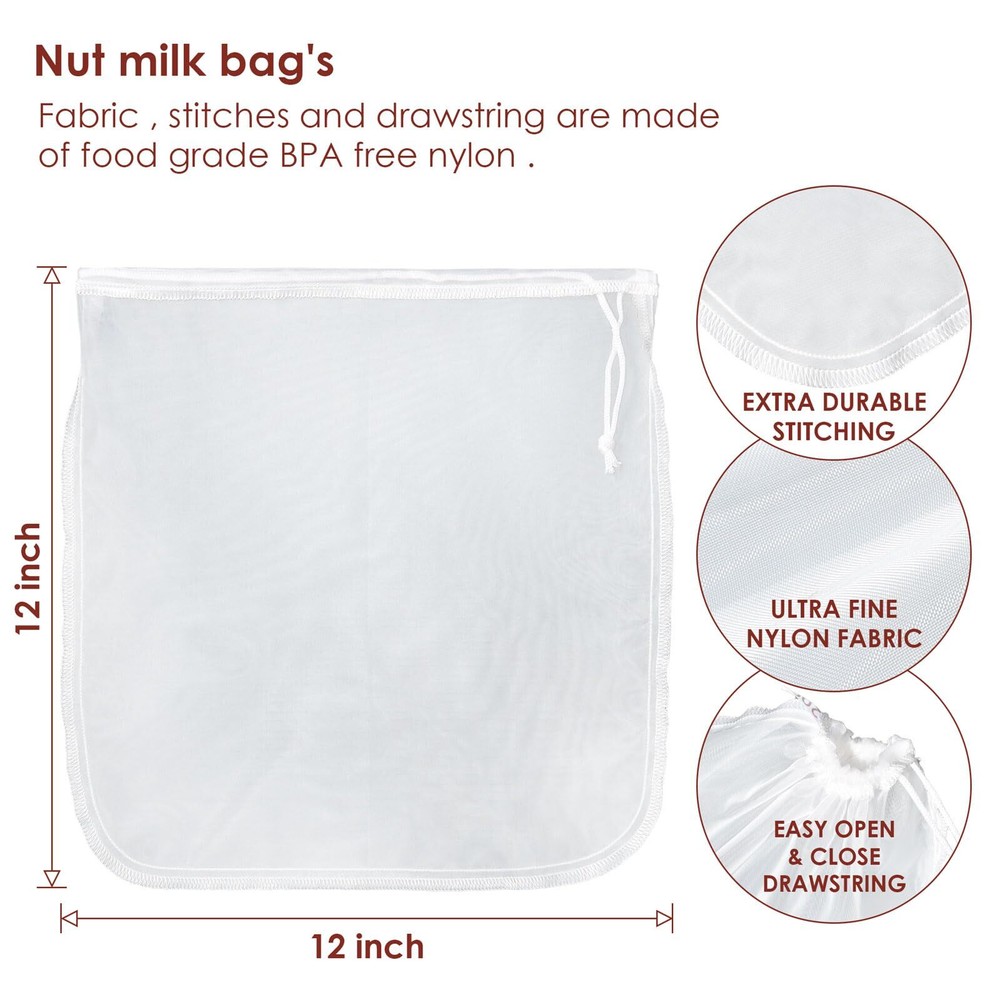 This nut milk bag is a game-changer for homemade plant-based milks! Super sturdy and easy to clean, it strains perfectly without any mess. I love how versatile it is—works great for almond milk, oat milk, and even straining broths. The fine mesh catches all the pulp, leaving smooth, creamy results every time. Highly recommend for anyone into DIY dairy alternatives!