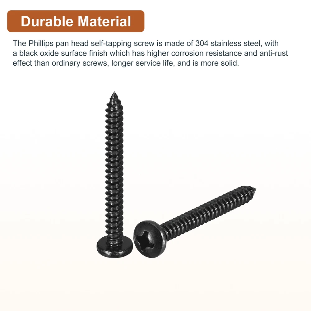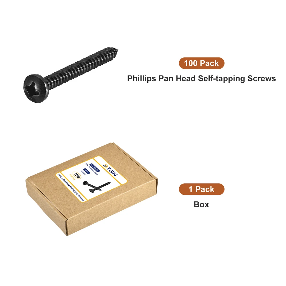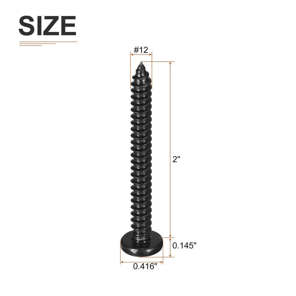 Document Product Details:Material: 304 Stainless SteelThread Dia: #12Thread Length: 2inchHead Dia: 0.416inchHead Thickness: 0.145inchPackage Content: 100pcs x Phillips Pan Head Self-tapping ScrewsMaterial - The Phillips pan head self-tapping screw is made of 304 stainless steel, which has higher corrosion resistance and anti-rust effect than ordinary screws, longer service life, and is more solid.Feature - For different materials, cross grooves are easy to drill into, such as wood, spray-painted sheet metal, or other materials, and are good hardware fasteners. The self-tapping design allows faster screwing into hardwood, reducing cracking problems.Application - Sheet metal screws are widely used for furniture, household goods, electronics, communications, power products, floor fastening, industrial, construction, machinery, equipment maintenance, and other DIY projects.Notice- For harder materials, it is recommended to pre-drill with a drill to make it easier to insert the screws. This prevents the material from cracking or screws from slipping. #12x2" Black Screws - 100Pack - 304 Stainless Steel Pan Head Phillips Screw Product Details: Material: 304 Stainless Steel Thread Dia: #12 Thread Length: 2inch Head Dia: 0.416inch Head Thickness: 0.145inch Package Content: 100pcs x Phillips Pan Head Self-tapping Screws Material - The Phillips pan head self-tapping screw is made of 304 stainless steel, which has higher corrosion resistance and anti-rust effect than ordinary screws, longer service life, and is more solid. Feature - For different materials, cross grooves are easy to drill into, such as wood, spray-painted sheet metal, or other materials, and are good hardware fasteners. The self-tapping design allows faster screwing into hardwood, reducing cracking problems. Application - Sheet metal screws are widely used for furniture, household goods, electronics, communications, power products, floor fastening, industrial, construction, machinery, equipment maintenance, and other DIY projects. Notice - For harder materials, it is recommended to pre-drill with a drill to make it easier to insert the screws. This prevents the material from cracking or screws from slipping. Hot Item Payment 1.We accept eBay payment . 2.Payment must be received within 7 business days of auction closing. Shipping 1.We ship to your eBay or Paypal address. Please make sure your eBay and Paypal address is correct before you pay. 2.Items will be shipped within 1-3 business day when we received payment. 3.Delivery time depends on destination and other factors. Description Policy #12x2" Black Screws - 100Pack - 304 Stainless Steel Pan Head Phillips Screw Product Details: Material: 304 Stainless Steel Thread Dia: #12 Thread Length: 2inch Head Dia: 0.416inch Head Thickness: 0.145inch Package Content: 100pcs x Phillips Pan Head Self-tapping Screws Material - The Phillips pan head self-tapping screw is made of 304 stainless steel, which has higher corrosion resistance and anti-rust effect than ordinary screws, longer service life, and is more solid. Feature - For different materials, cross grooves are easy to drill into, such as wood, spray-painted sheet metal, or other materials, and are good hardware fasteners. The self-tapping design allows faster screwing into hardwood, reducing cracking problems. Application - Sheet metal screws are widely used for furniture, household goods, electronics, communications, power products, floor fastening, industrial, construction, machinery, equipment maintenance, and other DIY projects. Notice - For harder materials, it is recommended to pre-drill with a drill to make it easier to insert the screws. This prevents the material from cracking or screws from slipping. Hot Item Payment 1.We accept eBay payment . 2.Payment must be received within 7 business days of auction closing. Shipping 1.We ship to your eBay or Paypal address. Please make sure your eBay and Paypal address is correct before you pay. 2.Items will be shipped within 1-3 business day when we received payment. 3.Delivery time depends on destination and other factors.