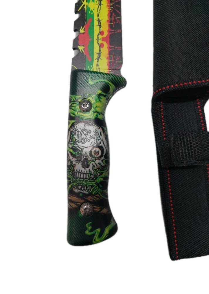 You are purchasing a pre-owned never used 13" fixed blade knife with sheathe. The sheathe does have a tare in it at the seam as noted in the photos.
