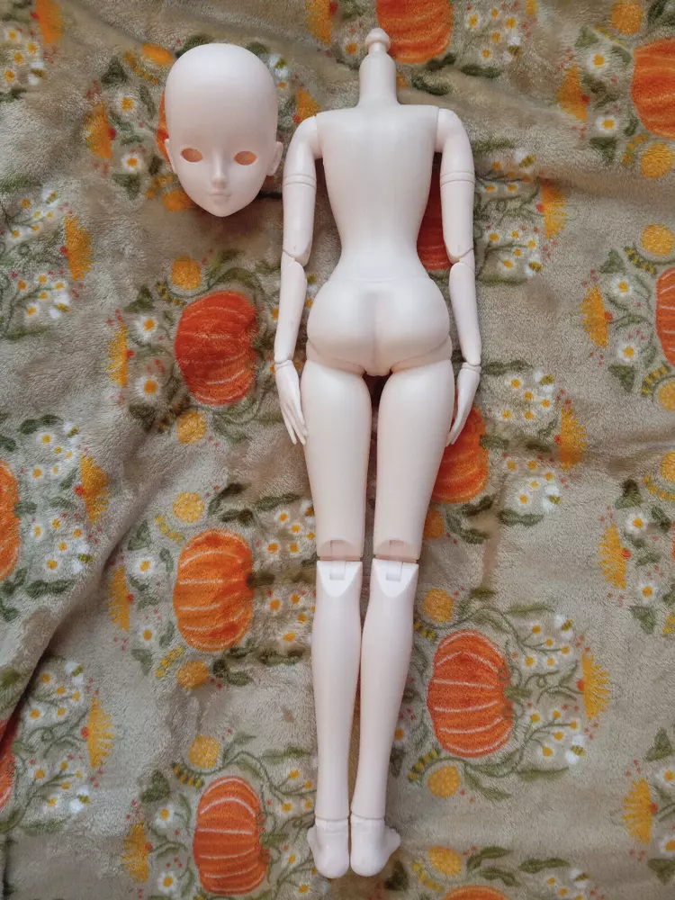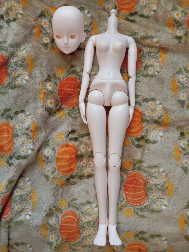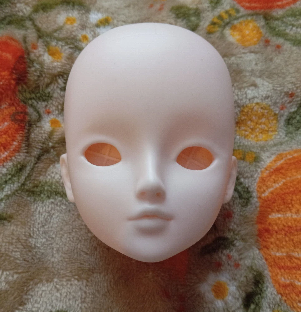 This is 1/3 scale doll head and body. The body is about 23 inches tall. THE HEAD DOES NOT OPEN. The head color matches the body pretty well. The neck hole on some of the heads appears to be blocked but it is just a loose piece of vinyl, you can still put the head on without any problems! The body is hollow yet somewhat sturdy plastic. The joints might be a little tight but if you work them a little they'll come around. Sometimes the hip joints could be loose. There is a possibility of various flaws on the body, such as some small scratches, dirty marks (from the factory), or seams in the plastic that are noticeable or coming loose (glue can fix it). There might also be some various dirty spots that might be on the face/head. The flaws are small and easy to fix/clean. Other than possible flaws on the body and head, it is pretty much in new condition. It also comes with a pair of shoes. Example pictures have been provided to show you what the face mold would look like if it were painted and/or had hair