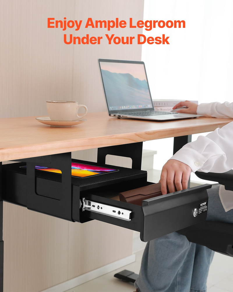13 in Lockable Under Desk Drawer Organizer Slide-out Drawer for Home Office Secure and Scratch-resistant Edges EVA Guard Liner Rust-resistant Surface Versatile Compatibility Thoughtful Security Design Top Shelf Storage Drawer Layers: Single,Locking Design: Lockable,Internal Height of Drawer: 2.36 in / 60 mm,Color: Black,Overall Length of Drawer: 13 in / 330.2 mm,Item Model Number: CT-2,Product Weight: 11.24 lbs / 5.1 kg,Internal Depth of Drawer: 9.6 in / 243.8 mm,Product Dimensions: 14.37 x 13.19 x 7.28 in / 365 x 335 x 185 mm,Internal Length of Drawer: 12.6 in / 320 mm,Main Material: Q235 Steel