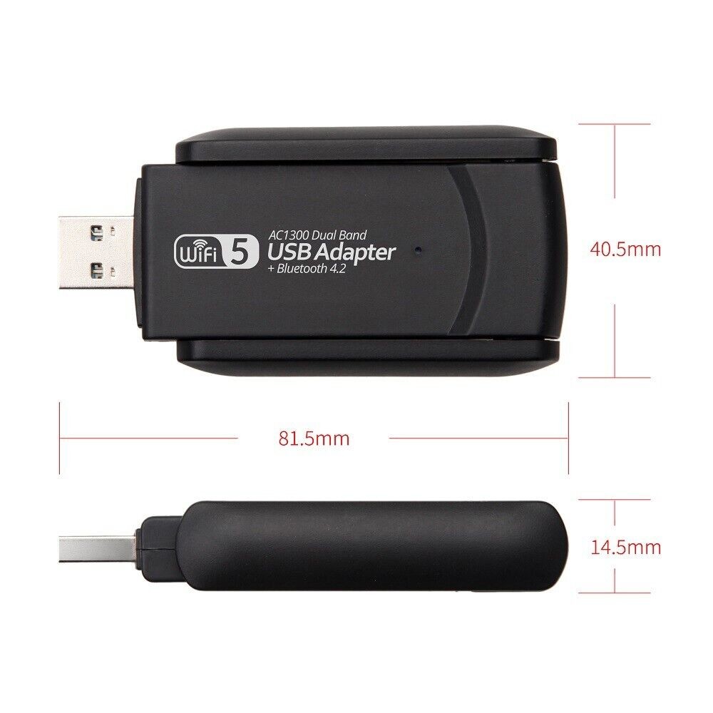 You may also like Product Description 1300Mbps Wireless USB Wifi Bluetooth Adapter Dongle Dual Band 2.4G/5GHz 802.11AC Specification: 【1300Mbps Super High-speed and Dual-Band】- The 1300Mbps wifi adapter can upgrade the PC network speed to 802.11ac, ensuring you enjoy a faster network environment. Using 5GHz (867Mbps) or 2.4GHz (400Mbps) dual-band technology, you can freely switch between the two frequency bands. Ensure that the network signal is more stable, effectively solve the blind area problems such as partition walls and long distances, so as to achieve the ultra-high speed of the 1300 wireless adapter. 【High-Gain Dual Antennas】- Equipped with two high-gain dual-frequency omnidirectional antennas, which can be rotated 90°, making it easier for the wireless network card to receive wifi signals, greatly enhancing the reception strength of the usb wifi adapter and sending signals, and the coverage is wider. Provide long-distance and delay-free connections throughout the house to ensure the stability and smoothness of wireless connections on desktops, laptops and PCs. 【USB 3.0 Ultra-Fast Transfer Rate】- The wireless adapter supports a transfer rate up to 5Gbps, which is 10 times faster than USB 2.0. It has strong compatibility and energy-saving features, while meeting the requirements of USB 3.0, and can also be backward compatible with USB 2.0 and 1.1 devices, thereby ensuring that the Wi-Fi adapter has the best performance and a more stable Internet connection. 【Multi-Compatibility】- Advanced Security (support WEP, TKIP, WPA, WPA2, AES) to ensure high security at work and be compatible with mainstream operating systems in the market. It can help your device get the best performance. In addition, the reception and transmission of WiFi signals allows you to say goodbye to wired cables and provide a more stable and safer wireless connection. 【Support】Supports for Windows7/8/10;Support IEEE802.11 ac standard, backward compatible with 802.11 a/b/n/g products. 【Bluetooth 4.2】Bluetooth 4.2,a more stable and lower power Bluetooth protocol. You can use this connection to manage your mobile phone, connect keyboard,mouse and wireless headphones 【Easy to Use】-Easy Setup, just install the driver from the included CD. After the driver is installed, you can use the built-in wireless utility in your operating system to connect to a wireless network. We provide quality service. At the same time, if you have any questions about the USB wireless network adapter, we will provide technical support. Packing included: 1 x USB wifi adapter Manual Payment Shipping Return Contact us 1 . We accept Paypal only. 2 . We only ship to your Paypal's address, please ensure your shipping address on your paypal account is correct. If you have any change for address, please inform us in ebay note. 3 . Payment must be fulfilled within 7 days after purchase. All non-paying orders will receive an unpaid reminder from eBay. Once we have received cleared full payment, your items will be dispatched in 1-3 days. It normally takes : 7-14 business days for US, UK, Canada, Australia, Asian countries. 14-21 business days for Spain, German, Middle East countries. 18-25 business days for Russia, Brazil, Italy, France, European countries. 24-32 business days for South American countries. We send items by air mail to the buyer without track number. There maybe some delay due to flight, holiday, weather, local post, local natural disaster impact. if your shipment delays, we hope you can be patient, and at the same time contact us, we will try our best to help you. Import duties, taxes and charges are not included in the item price or shipping charges. These charges are the buyer's responsibility. Please check with your country's customs office to determine what these additional costs will be prior to bidding / buying. If any item is defective upon receipt or do not work, please contact us for the return address, return is accepted within 30 days after the buyer receiving the item. Returned item has to be in its original condition. Buyer is responsible for return shipping costs . After receiving the return we will make a replacement depends on our available stock, if not available, a refund will be issued. All products have been checked and packaged in good condition before dispatch. In case the item is defective, please inform us within 30 days after the package successfully delivered , we will do our best to help. If you have any enquiries, please contact us through eBay Message and clearly tell us what happened or what you need (No dispute, No Negative Feedback, No Neutral Feedback). If you have any enquiries or not satisfactory the item , please contact us priority before leaving any Neutral or Negative feedback or Open Dispute/Return Request. Communication is the fastest and most direct way to solve problems. Customer service hours: 8:30-18:00 Beijing time If you do not reply to you in time due to the time difference, please understand. We will reply to you as soon as possible within 8 hours. Payment 1 . We accept Paypal only. 2 . We only ship to your Paypal's address, please ensure your shipping address on your paypal account is correct. If you have any change for address, please inform us in ebay note. 3 . Payment must be fulfilled within 7 days after purchase. All non-paying orders will receive an unpaid reminder from eBay. Shipping Once we have received cleared full payment, your items will be dispatched in 1-3 days. It normally takes : 7-14 business days for US, UK, Canada, Australia, Asian countries. 14-21 business days for Spain, German, Middle East countries. 18-25 business days for Russia, Brazil, Italy, France, European countries. 24-32 business days for South American countries. We send items by air mail to the buyer without track number. There maybe some delay due to flight, holiday, weather, local post, local natural disaster impact. if your shipment delays, we hope you can be patient, and 