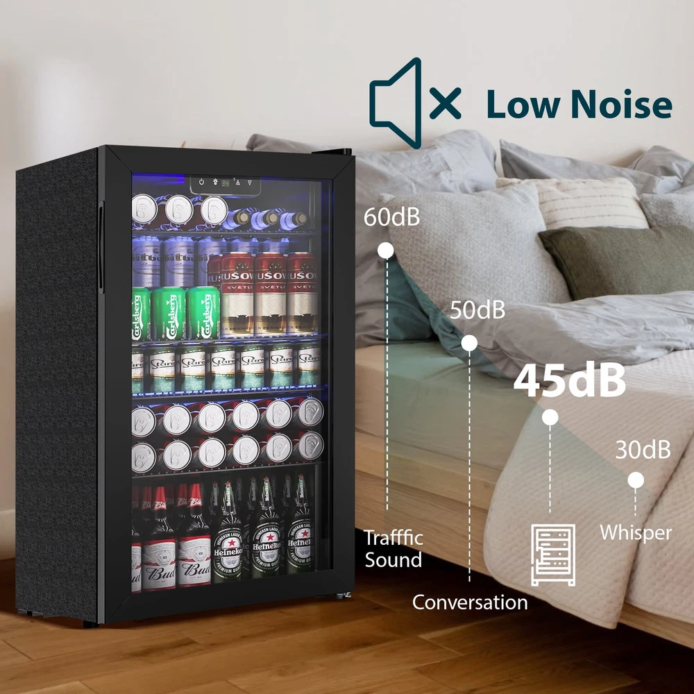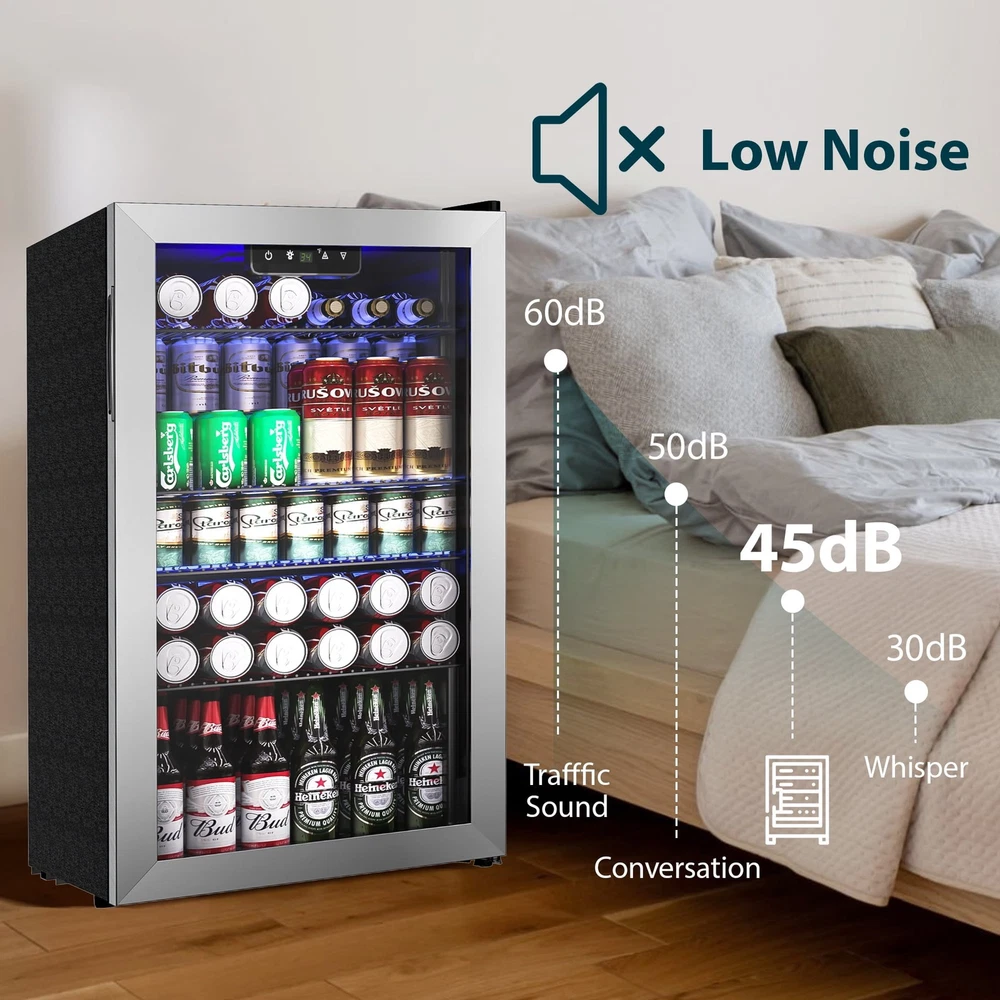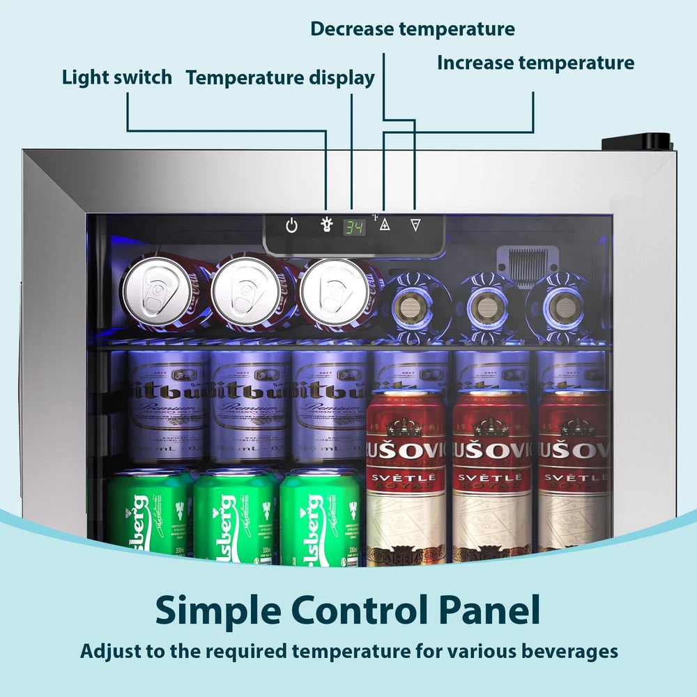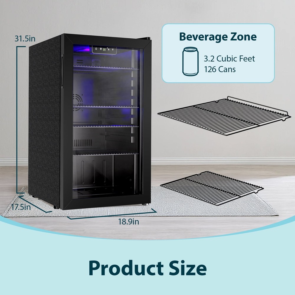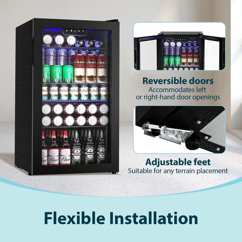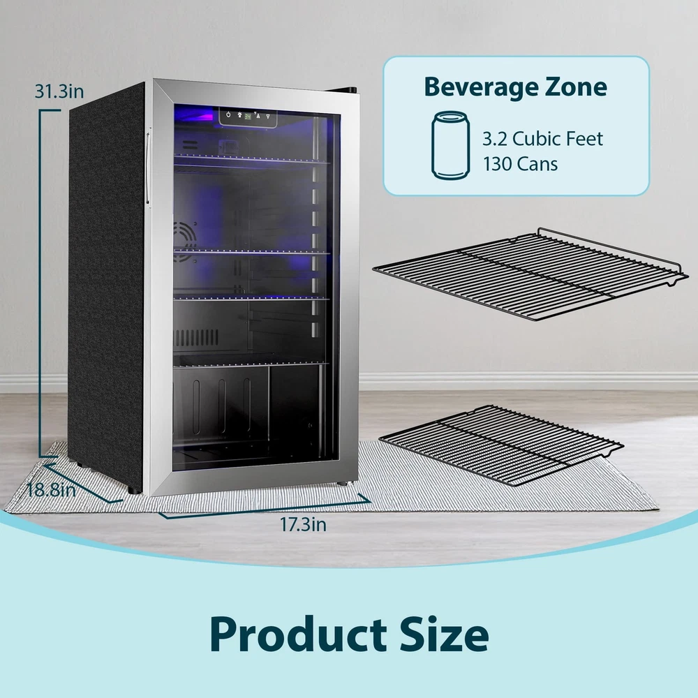 Store Categories Store Categories Other 130 Can Beverage Refrigerator and Cooler with Glass Door 17.3 in D 31.5 in H Product Description Advanced Cooling: Our mini beverage fridge ensures your drinks are perfectly chilled at all times! With a temperature range of 34°F to 64°F, you can enjoy refreshing sodas, beer, and wine right in the comfort of your home Customizable Storage: This small beverage fridge offers storage flexibility with four removable shelves and eight slot options, allowing you to customize the space according to your needs Store cans, tall bottles, snacks, or anything else easily Large Capacity: With a spacious capacity of up to 130 cans, this 3.2 cubic feet beverage fridge is perfect for stocking up for parties or having easy access to your favorite drinks Its compact design allows it to fit in any room of the house LED Light & Touch Control: Enjoy easy access to your drinks with the powerful LED interior light that provides bright illumination The touch control panel makes it easy to adjust and set the temperature to your preference User Friendly: This single zone beverage mini refrigerator features a reversible door and adjustable feet for easy installation The auto defrost feature eliminates the need for manual maintenance, giving you more time to enjoy your drinks The built in handle ensures effortless opening and closing of the fridges Payment Policy Shipping Policy Returns Policy Feedback Policy Contact Us Payment Policy All major credit cards are gladly accepted including credit, debit and gift cards, Apple Pay, Google Pay, PayPal, and PayPal Credit. Your order will be processed pending receipt of cleared payment through your payment of choice. Sales tax may be charged de pending on your lo cation. Shipping Policy After payment is received, all items are shipped within 48-72 hours after work (except Saturdays, Sundays, and holidays). During the store's vacation, there are dedicated warehouse staff to arrange shipment, and there will be no delay in shipment. Please rest a ssured to purchase. All products are free of shipping. Returns Policy We accept return within 30 days since you received your package. Please contact us for return or refund. I f you have any questions, please feel free to contact us and we will reply to you within 24 hours. Feedback Policy We greatly appreciate your POSITIVE feedback. Please do NOT leave negative feedback without asking for help. Our aim is to provide Top Level Customer Service. If you have any questions, please feel free to contact us and we will reply to you as soon as we see the message. Thank you very much for your understanding. Contact Us You can contact us by leaving us an txt message on Ebay. We will respond to each txt message within 24 hours every working days(within 36 hours on weekend). We will provide you the best servi ce, sincerely appreciated you would contact us to get a better solutions . Thank you so much to consider time difference, maybe we couldn't not reply to you in a timel manne. Copyright © 2023 Dianxiaomi