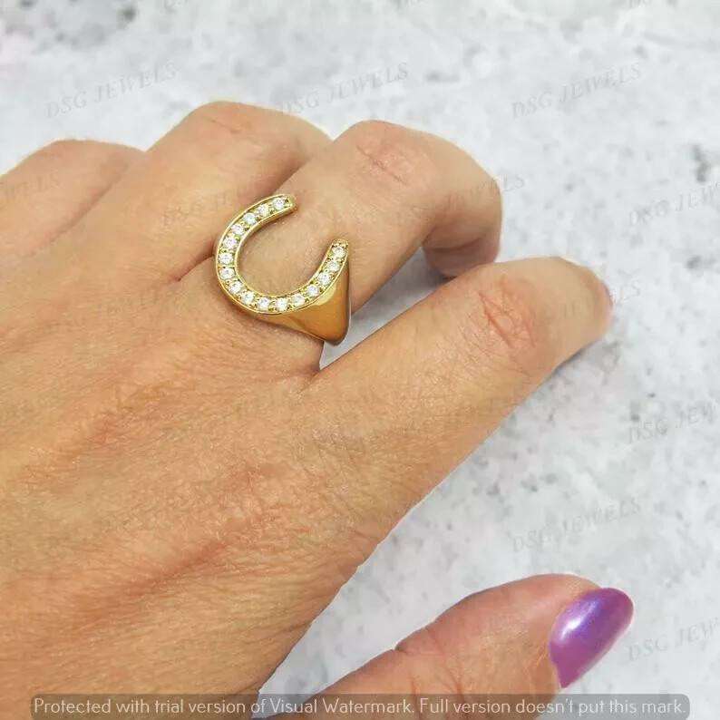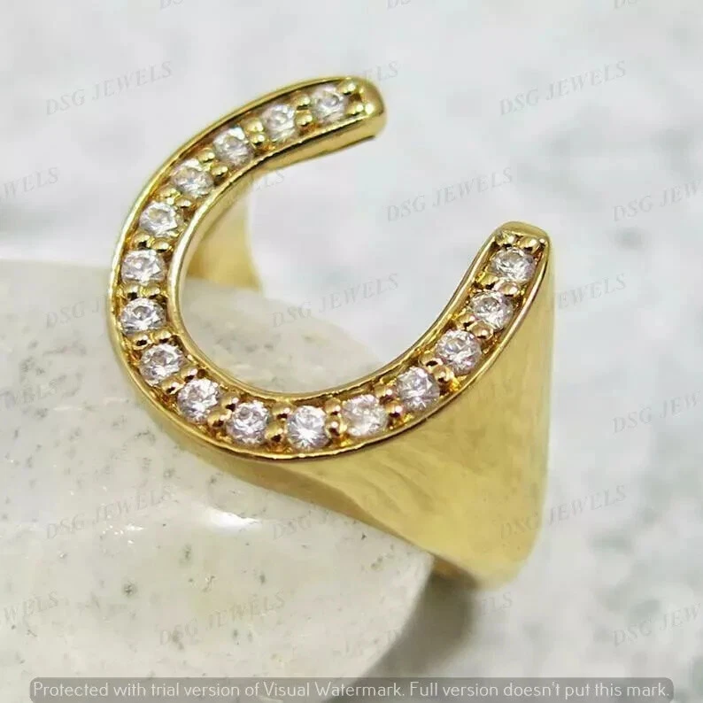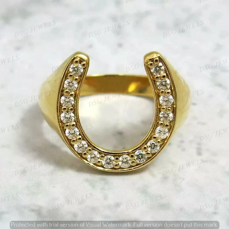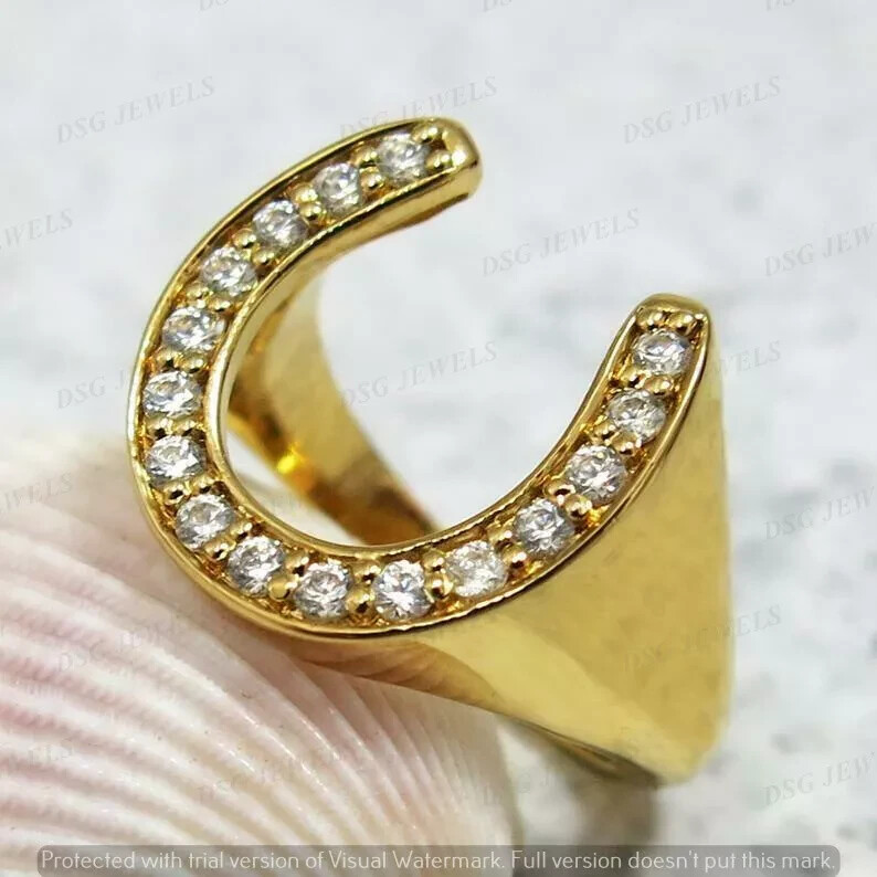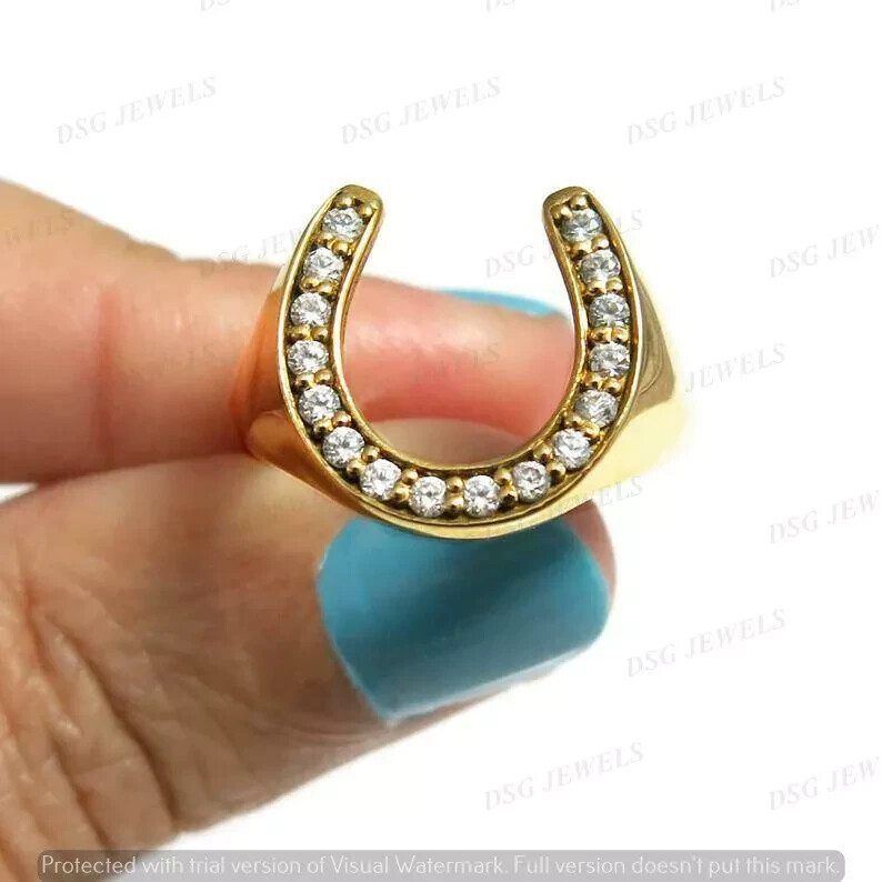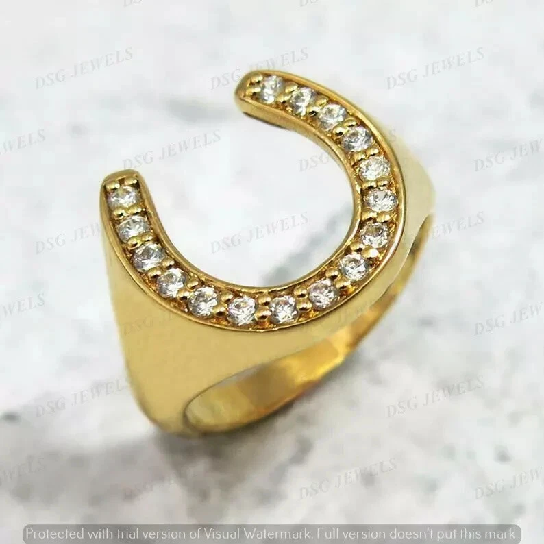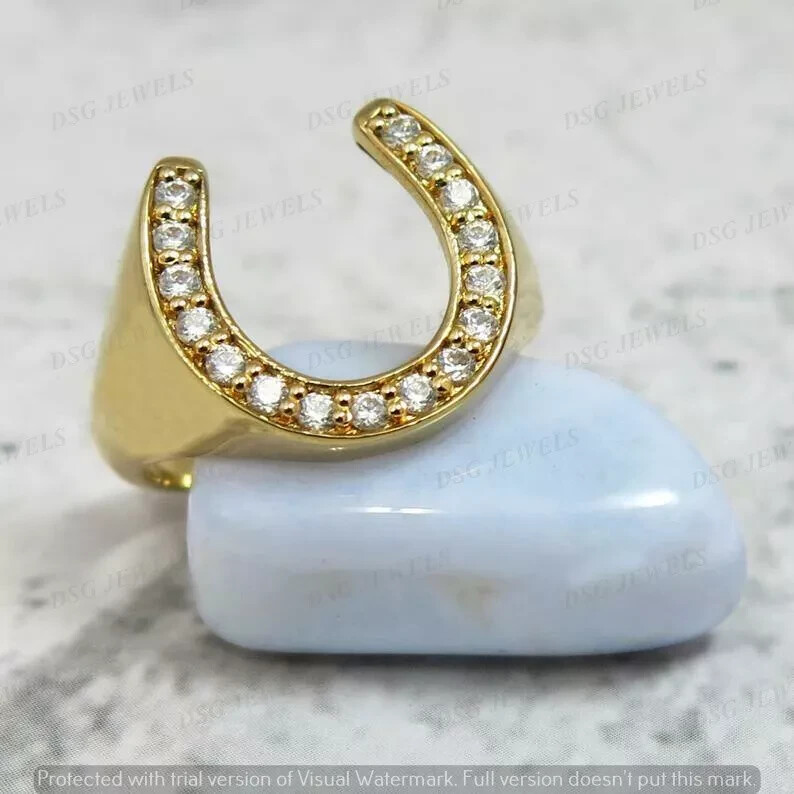 1.30Ct Round Moissanite Horseshoe For Men's Pinky Ring 14K Yellow Gold Plated Customization: Want to add your personal touch to this piece? Contact us and we will create one just for you. Most customization requests include: 1) Ring Resizing 2) Redesign 3) Metal Change (Silver/10K Gold / 14K Gold /18K Gold) 4) Metal Color Change (White/Yellow/Rose/Black) 5) Color Stones (White Topaz, Pink Sapphire, etc) 6) Engraving (Name or any message - no of characters subject to size of jewelry) 7) Anything under the sun that catches your fancy, we will give it a try :) Payment: We accept payment via PayPal only. You can also pay using your credit card, via paypal, by using paypal as a guest. Payment is required within 3 days of the sale of an item. Shipping: International shipments are usually delivered within 2 to 6 weeks, depending on the time taken to clear customs. We are not responsible for any delays due to customs. Please note that all countries charge a duty on imported goods. A customs clearing charge is also imposed in many countries. We are not responsible for the amount of duty or any other related charges. Terms & Sale: We want to ensure that you are completely satisfied with your purchase. If not, then please let us know before leaving any feedback and allow us to work with you to completely resolve any issues that you might be facing. You can return the item for a full refund LESS shipping, within 14 days of item(s) receipt date. There is no restocking fee. 100% Satisfaction Guaranteed. All returns must reach us within 14 days after the item was delivered to you the item must be in the original condition and with the original tags attached. Contact Us: You can contact us by clicking on 'ask seller a question'