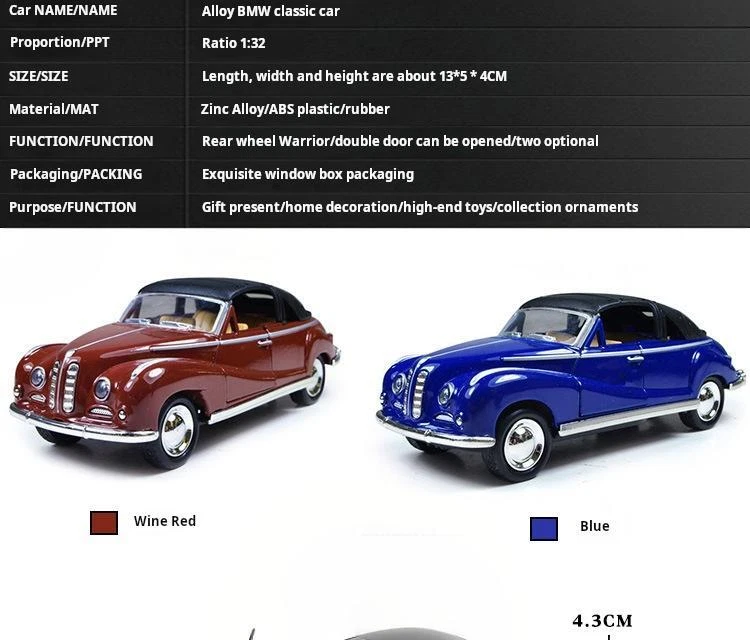 1:32 Alloy Classic Car Model, Pull-back Toy, Die-cast Boy's Educational Car, Kids Ornament Payments All payment methods are accepted through eBay manage payment. PayPal, Credit Card, Visa, Google Play, PayPal Card. Returns We accept returns 30 days from package received. In any case, if you are not satisfied with the product, first, please contact me and, I will do everything to your satisfaction.