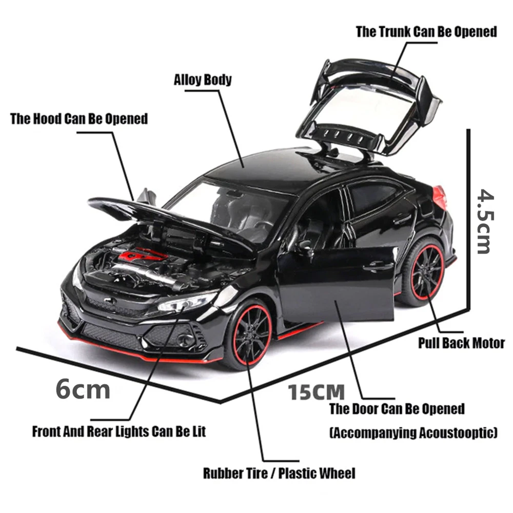 Product Description Features: With light and sound effect and pull back function Front doors, engine cover and trunk lid can be open Press the car or open the door, it will make sound and light Adopts high quality material, durable and safe Great choice of gift for kids, especially for Birthday, Christmas and New Year Gift. Great item for collector, business gift, home decoration, office decoration, display. Specifications: Material: Alloy+ABS+Rubber Size: 15x6x4.5cm/5.9x2.36x1.77in Power supply: Three AG13 button batteries (included) Scale: 1:32 Color: Black Model For Honda Civic Type R Package include: 1* 1:32 Model Toy Car If you have any questions, please feel free to contact us via ebay. We usually respond within 24 hours. Payment Shipping Returns Contact Us We accept all verified payments from ebay. Orders will be shipped after receiving cleared payment. Payment due within 7 days after auction ends and for buy it now listings. We ship most of our orders within 24 hours, and may up to 48 hours for. If you want faster shipping way. Please contact us before making payment. Sometimes due to problems with our transportation company system, your shipping information may be delayed to update. We recommend that you try again after 3-4 days. If you still haven't checked the shipping information, you can contact us by ebay message. Always believe we can figure things out with communication, if it comes to return, the pacakge must be intact and the same as you receive. If you have any questions, please feel free to email our service specialists 24 Hours a Day, 7 Days a Week. We will reply you ASAP. Return/refund is accepted within 30 days after the buyer receives the item. NO exchange will be accepted after 30 days from the date when the item is received. Please contact us first before returning your product!!! If you have any questions, our Customer Service staffs welcome you to email us. We strive to answer all questions and resolve any problems as quickly as possible. You can contact us 7*24, we will reply at the first time, and we will surely solve your problems. Note: 1.We try our best to reply to your emails as soon as possible, however, due to high volume of daily incoming emails and time zone difference, we may not be able to reply your emails immediately. Please allow 1 business days for us to response. If you do not receive any reply from us, please check your email ensuring your mailbox has not reached full size. 2.Due to some ISP SPAM filter settings, you may not be able to receive our replies; if you have problems receiving our emails, you may need to use a different email account to contact us. 3.Please give us the opportunity to resolve any problem. We understand the concerns and frustrations you might have, and will try our best to resolve the issues. Please email us before leaving any negative feedback or open any dispute on PayPal. 4.We care about our valued customers, and will always try to help you. So if you have any problems, please e-mail us immediately. Payment We accept all verified payments from ebay. Orders will be shipped after receiving cleared payment. Payment due within 7 days after auction ends and for buy it now listings. Shipping We ship most of our orders within 24 hours, and may up to 48 hours for. If you want faster shipping way. Please contact us before making payment. Sometimes due to problems with our transportation company system, your shipping information may be delayed to update. We recommend that you try again after 3-4 days. If you still haven't checked the shipping information, you can contact us by ebay message. Returns Always believe we can figure things out with communication, if it comes to return, the pacakge must be intact and the same as you receive. If you have any questions, please feel free to email our service specialists 24 Hours a Day, 7 Days a Week. We will reply you ASAP. Return/refund is accepted within 30 days after the buyer receives the item. NO exchange will be accepted after 30 days from the date when the item is received. Please contact us first before returning your product!!! Contact Us If you have any questions, our Customer Service staffs welcome you to email us. We strive to answer all questions and resolve any problems as quickly as possible. You can contact us 7*24, we will reply at the first time, and we will surely solve your problems. Note: 1.We try our best to reply to your emails as soon as possible, however, due to high volume of daily incoming emails and time zone difference, we may not be able to reply your emails immediately. Please allow 1 business days for us to response. If you do not receive any reply from us, please check your email ensuring your mailbox has not reached full size. 2.Due to some ISP SPAM filter settings, you may not be able to receive our replies; if you have problems receiving our emails, you may need to use a different email account to contact us. 3.Please give us the opportunity to resolve any problem. We understand the concerns and frustrations you might have, and will try our best to resolve the issues. Please email us before leaving any negative feedback or open any dispute on PayPal. 4.We care about our valued customers, and will always try to help you. So if you have any problems, please e-mail us immediately. You may also like 2pcs H4 LED Light Bulbs Conversion Kit 10000LM 6000K Super White 4.59 GBP Portable Mini Metal 5V USB Power Bank DIY Case Charger Box Kit For 18650 Battery 3.19 GBP 2-Port USB VGA KVM Switch Box For Mouse Keyboard Monitor Sharing 2 Computer PC 8.99 GBP 0.5mm-1.6mm Bit Assorted Steel Watch Bracelet Remover Band Pin Punch Tool 9 In 1 10.39 GBP 50pcs 1.57in Large Coin Cardboard Mylar Flips Holder Bag Bundle Cover Envelopes 3.99 GBP 10Pcs 4x13x5mm 624zz Steel Sealed Shielded Deep Groove Ball Bearings Replacement 2.39 GBP powered by