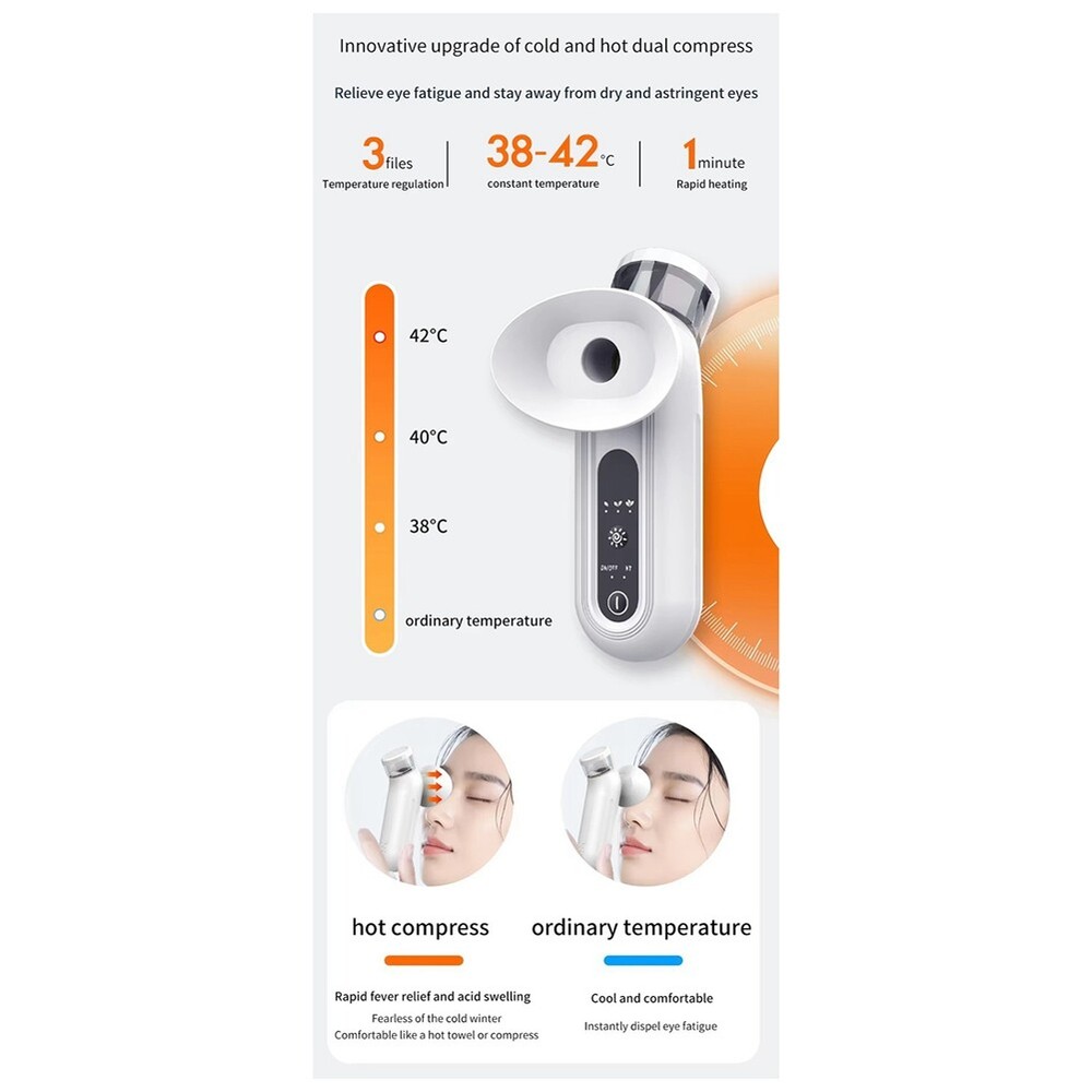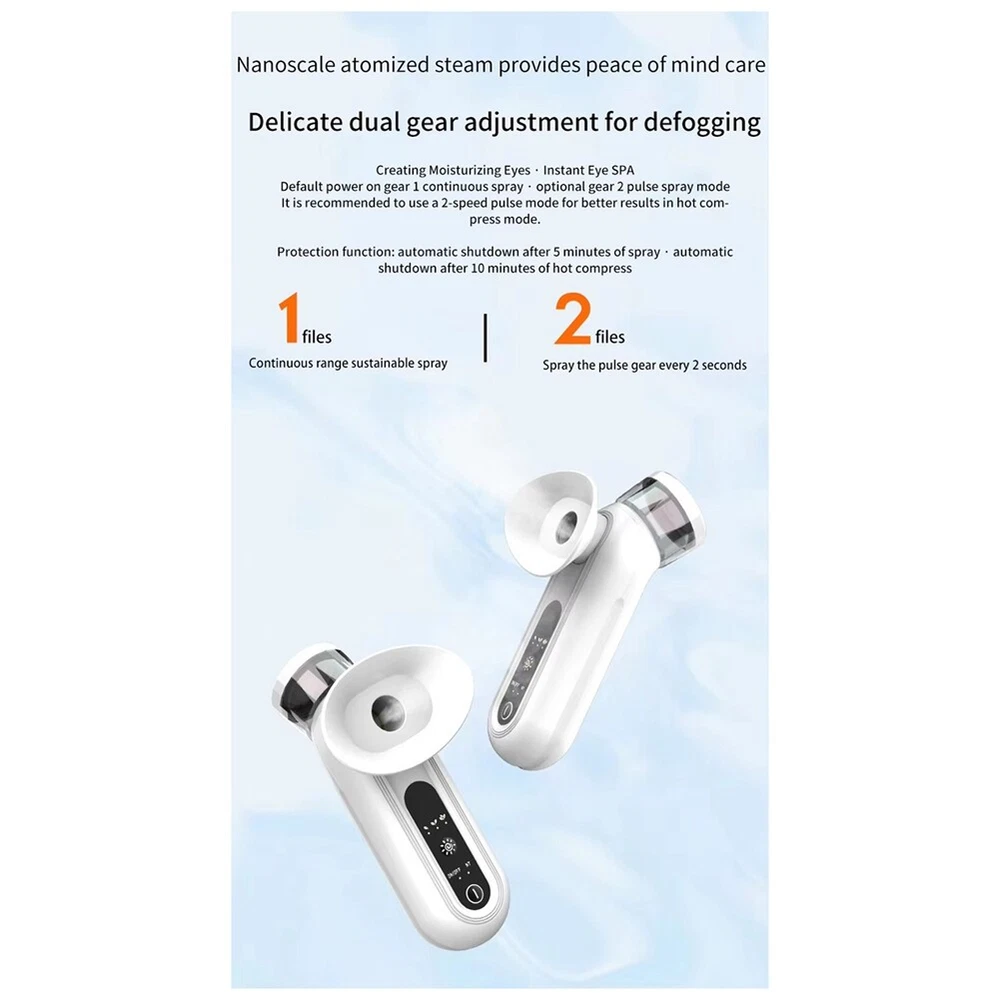 -132 Eye Sprayer, Artificial Tears, Dry and Tired Eyes, Hot and Cold 5148 1.Atomization:Mist sprayer's atomizing particles penetrate deeply, changing eye nutrient solution from dropping to atomizing. Compared with traditional manual , it is more accurate, more permeable and more fully absorbed. 2.New Design-Moist heat:it can provides heat . we know only moisturizing is not enough to relieve dry eyes and stye,the heat is also very necessary,the is to combine and produce moist heat. 3.Simple operation:3-speed temperature mode,2 moisturizing modes-Continuous & Pulse per 2 Seconds .The built-in 500mAh can be used 20--40mins on a full charge. 4.Who need this product?if you have MGD, Blepharitis,Stye,Chalazion or Long-term use electronic products and often feel eyes tired,this product is really helpful . 5.Natures tears eye mist :the dry eye is helpful for tear restore,you can take it in your bag and use it anywhere and anytime. Soothing and moist:Effectively soothes the eyelashes and provides optimal moisture, keeping them healthy. Colour:White Material:ABS Package Contents: 1 x Data cable 1 x Eye