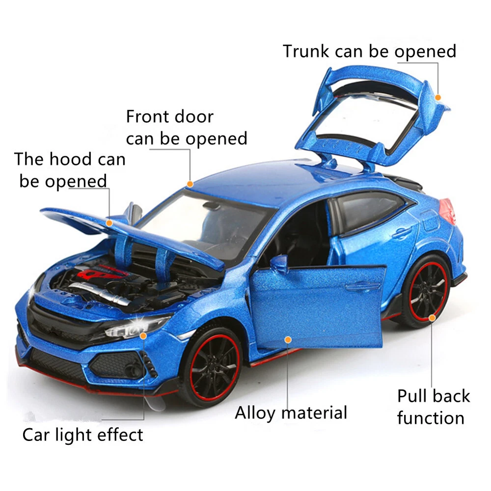 Product Description Features: With light and sound effect and pull back function Front doors, engine cover and trunk lid can be open Press the car or open the door, it will make sound and light Adopts high quality material, durable and safe Great choice of gift for kids, especially for Birthday, Christmas and New Year Gift. Great item for collector, business gift, home decoration, office decoration, display. Specifications: Material: Alloy+ABS+Rubber Size: 15x6x4.5cm/5.9x2.36x1.77in Power supply: Three AG13 button batteries (included) Scale: 1:32 Color: White/Blue/Red/Black Model For Honda Civic Type R Package include: 1* 1:32 Model Toy Car If you have any questions, please feel free to contact us via ebay. We usually respond within 24 hours. Payment Shipping Returns Contact Us We accept all verified payments from ebay. Orders will be shipped after receiving cleared payment. Payment due within 7 days after auction ends and for buy it now listings. We ship most of our orders within 24 hours, and may up to 48 hours for. If you want faster shipping way. Please contact us before making payment. Sometimes due to problems with our transportation company system, your shipping information may be delayed to update. We recommend that you try again after 3-4 days. If you still haven't checked the shipping information, you can contact us by ebay message. Always believe we can figure things out with communication, if it comes to return, the pacakge must be intact and the same as you receive. If you have any questions, please feel free to email our service specialists 24 Hours a Day, 7 Days a Week. We will reply you ASAP. Return/refund is accepted within 30 days after the buyer receives the item. NO exchange will be accepted after 30 days from the date when the item is received. Please contact us first before returning your product!!! If you have any questions, our Customer Service staffs welcome you to email us. We strive to answer all questions and resolve any problems as quickly as possible. You can contact us 7*24, we will reply at the first time, and we will surely solve your problems. Note: 1.We try our best to reply to your emails as soon as possible, however, due to high volume of daily incoming emails and time zone difference, we may not be able to reply your emails immediately. Please allow 1 business days for us to response. If you do not receive any reply from us, please check your email ensuring your mailbox has not reached full size. 2.Due to some ISP SPAM filter settings, you may not be able to receive our replies; if you have problems receiving our emails, you may need to use a different email account to contact us. 3.Please give us the opportunity to resolve any problem. We understand the concerns and frustrations you might have, and will try our best to resolve the issues. Please email us before leaving any negative feedback or open any dispute on PayPal. 4.We care about our valued customers, and will always try to help you. So if you have any problems, please e-mail us immediately. Payment We accept all verified payments from ebay. Orders will be shipped after receiving cleared payment. Payment due within 7 days after auction ends and for buy it now listings. Shipping We ship most of our orders within 24 hours, and may up to 48 hours for. If you want faster shipping way. Please contact us before making payment. Sometimes due to problems with our transportation company system, your shipping information may be delayed to update. We recommend that you try again after 3-4 days. If you still haven't checked the shipping information, you can contact us by ebay message. Returns Always believe we can figure things out with communication, if it comes to return, the pacakge must be intact and the same as you receive. If you have any questions, please feel free to email our service specialists 24 Hours a Day, 7 Days a Week. We will reply you ASAP. Return/refund is accepted within 30 days after the buyer receives the item. NO exchange will be accepted after 30 days from the date when the item is received. Please contact us first before returning your product!!! Contact Us If you have any questions, our Customer Service staffs welcome you to email us. We strive to answer all questions and resolve any problems as quickly as possible. You can contact us 7*24, we will reply at the first time, and we will surely solve your problems. Note: 1.We try our best to reply to your emails as soon as possible, however, due to high volume of daily incoming emails and time zone difference, we may not be able to reply your emails immediately. Please allow 1 business days for us to response. If you do not receive any reply from us, please check your email ensuring your mailbox has not reached full size. 2.Due to some ISP SPAM filter settings, you may not be able to receive our replies; if you have problems receiving our emails, you may need to use a different email account to contact us. 3.Please give us the opportunity to resolve any problem. We understand the concerns and frustrations you might have, and will try our best to resolve the issues. Please email us before leaving any negative feedback or open any dispute on PayPal. 4.We care about our valued customers, and will always try to help you. So if you have any problems, please e-mail us immediately. You may also like 2pcs H4 LED Light Bulbs Conversion Kit 10000LM 6000K Super White 4.59 GBP Portable Mini Metal 5V USB Power Bank DIY Case Charger Box Kit For 18650 Battery 3.19 GBP 10Pcs 4x13x5mm 624zz Steel Sealed Shielded Deep Groove Ball Bearings Replacement 2.39 GBP 2-Port USB VGA KVM Switch Box For Mouse Keyboard Monitor Sharing 2 Computer PC 8.99 GBP 0.5mm-1.6mm Bit Assorted Steel Watch Bracelet Remover Band Pin Punch Tool 9 In 1 10.39 GBP Watch Polishing Scratch Repair Cream Hardware Derusting Tool Grinding Paste 4.69 GBP powered by