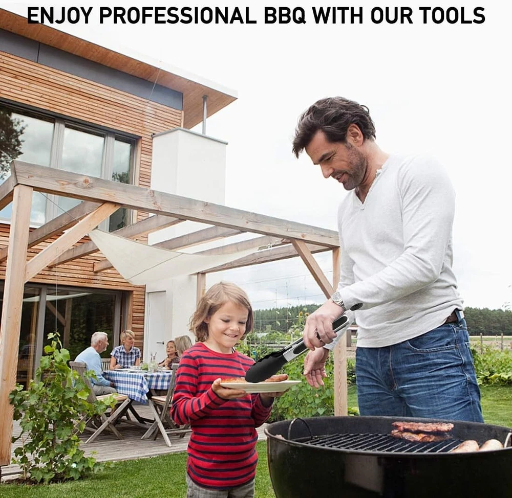 135 PCS Griddle Accessories Kit for Blackstone, BBQ Grill Tool Set with Spatula Premium Stainless Steel: Metal flat top grill is made of high quality 304 stainless steel ensure the griddle accessories compatible with Blackstone griddle, which is bpa free, durable, rust proof, you can use it with confidence. Most Complete Set: Our 135 Pcs BBQ set is the most complete grill accessories set on the market, which can meet all your needs. It includes spatula, slotted spatula, basting cover, grill tongs, grill fork, meat knife, basting brush, fish turner, chopper, scraper, 2 sauce dispenser(16oz), 4 egg rings, 2 spice shaker, Scissors, silicone gloves, meat thermometer, meat injector, 100pcs bamboo skewers, apron, cleaning Brush, storage bag, 10 hooks. The Necessary Tools: Spatulas, scraper, and oil bottles are necessary griddle tools for any serious griddle chef. Long Griddle Spatula can move large amounts of food quickly and accurately. Chopper/scraper to dice food and scrape griddles clean. It will please everyone at your BBQ, weekend party or your everyday meals. The Extra Tools: Egg Ring can shape your eggs in round and heart shape that is more delicate; 12 inches casting cover helps to reduce cooking time and splatter; Fork has sharp tail helps to fork any stuff with minimal effort; Fish Turner not only solid but also thin and flexible so you can get under the delicate food like fish without destroying it. Perfect Gift Choice : Beautifully designed gift box quality packaging, which is ideal gift choice for Fathers Day, Thanksgiving or Christmas. 135 PIECES GRIDDLE ACCESSORIES We created a complete set of Flat Top Grill Accessories that lets you build beautiful burgers, succulent steak, perfect pancakes and amazing cuisines from start to finish! Take a break on your garden from your busy life with our professional griddle BBQ tool set. Ideal Gift for Family & Friend Ideal grill tool kit makes the perfect gift set for Family or for friends or simply get yourself. Our griddle spatula set is ideal gift choice for Birthday, Valentine's Day, Fathers Day, and Christmas Day. 135 PCS Complete Set Heat Resistant Dishwasher Safe Food Grade Stainless Steel Perfect Gift Choice Rust-Proof & Durable Different Spatula Set: multi-purpose grill spatulas meet all your BBQ Grilling needs. Different Spatula Set: multi-purpose grill spatulas meet all your BBQ Grilling needs. Professional Grade Stainless Steel: Thicker stainless steel with solid construction & thick blade. Ergonomic Handle Design: Helps you comfortably non-slip to use it, and with the hanging hold for easy storage. Easy to Carry with the Bag It comes with a custom canvas bag to store them in which is great so they can be kept with the grill and not jammed in your kitchen utensil drawer which is already full. The bag is much convenient for you to carry when you have a picnic or camping. Dishwasher Safe All tools are made of food grade stainless steel, they are easy to clean, and also can be put into the dishwasher, which is safe and healthy, and this will saving your time. Hanging Holes All tools are designed with hanging holes, these holes are big enough to be easily hung beside your griddle, also suitable for kitchen, it will be faster and more convenient to use. Kitchen Apron for Men/Women Made from Premium Polyester, machine washable, breathable. very soft and comfortable to wear. Covers the entire front so that you won’t get dirty or messy while cooking
