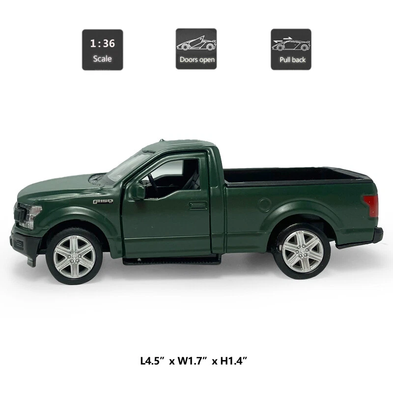1:36 Ford F-150 Pickup Truck Model Car Toy Cars Diecast Vehicle Toys for Boys Item Type Diecast & Toy Vehicles Scale 1:36 Material Diecast and ABS Colour Matte blue and matte green Dimension About L4.5" x W1.7" x H1.4" (L11.5 x W4.4 x H 3.6 cm) Vehicle Type Pickup Truck Function *Pull back *Two doors can be open Packing Packed in original colour box, in excellent condition Tips *Great choice of gift for kids, especially for Birthday, Christmas and New Year Gift *Great item for collector, business gift, home decoration, office decoration, display Warning Don't put in mouth/Keep Away from Fire/Not for Children under 3 Years Notice Due to manual measurement, please allow a little error Package include 1 x 1:36 Scale Ford F-150 Pickup Truck Model Car Payment Delivery details Terms of sales Payment We accept paypal only. Delivery details We ship orders within 24 hours upon receipt of payment. Terms of sales We provide great products and service. If you have any problems with the order,please do contact us before leaving negative feedback and opening case on eBay.