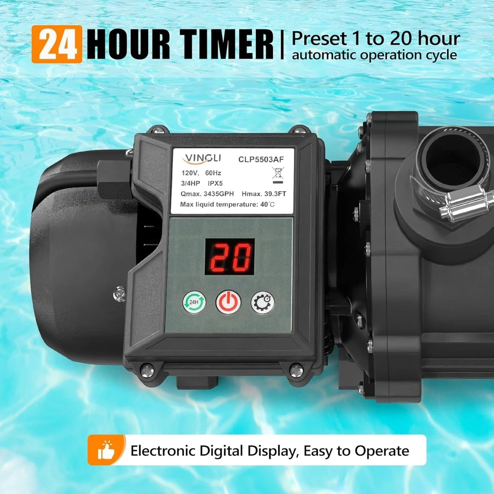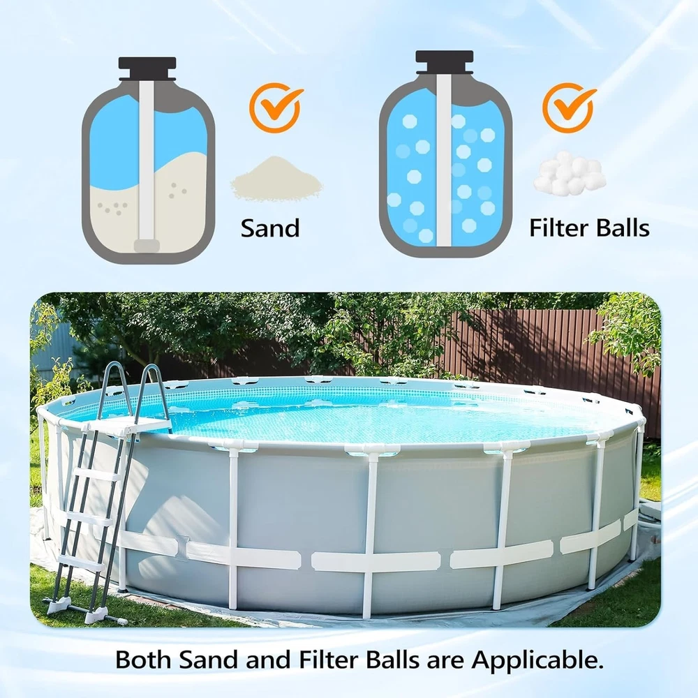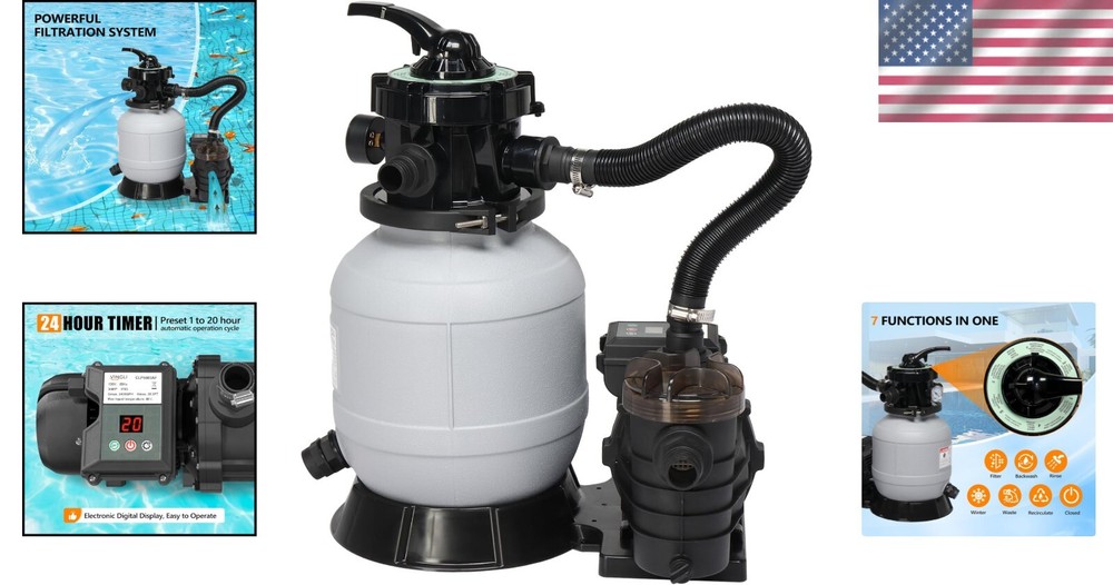 Sand Pool Filter Pump 1/3HP 115V 24H Timer Inground Above Ground Pool ‹ › ‹ › ‹ › ‹ › ‹ › ‹ › ‹ › ‹ › ‹ › ‹ › Sand Pool Filter Pump -1/3HP 115V with 24H Timer -Designed for Inground and Above Ground Pools Features: High-Efficiency Filtration: Circulates and filters pool water through the sand cylinder, ensuring a pristine pool environment. 7 Function Controls: Choose from Filter, Rinse, Backwash, Recirculate, Waste, Winter, and Closed modes. Low Noise Operation: Enjoy a quieter experience while maintaining your pool. Easy Installation: Detailed instructions included for hassle-free setup. Suitable for Pools Up to 8000 Gallons: Perfect for residential needs. Powerful 1/3HP Pump: With a flow rate of up to 2087 gallons per hour. Convenient 24-Hour Timer: Schedule automatic operations from 1 to 20 hours for easy pool maintenance. Connection Compatibility: Designed with a 1.25-inch outlet size for connecting hoses. Benefits: Keep your pool clean and inviting with high-efficiency filtration. Save time with automated scheduling and low maintenance. Enjoy peace of mind with certified safety standards. Versatile application for pools, hot tubs, and spas. Why Choose Our Sand Pool Filter Pump? Are you seeking a reliable solution for maintaining crystal-clear pool water? Look no further than our Sand Pool Filter Pump. With its exceptional filtration capabilities and versatile 7-function controls, this pump is designed to meet both inground and above ground pool needs, all while adhering to the highest safety standards. With its low noise operation and efficient power usage, you can comfortably enjoy your outdoor space without the distraction of excessive noise. Enjoy the luxury of presetting your pump to run according to your schedule, ensuring that your pool remains the epitome of cleanliness and relaxation. Don't let pool maintenance overwhelm you; invest in our Sand Pool Filter Pump and experience peace of mind! Order yours today and elevate your pool experience! Shipping Free & Fast Shipping - We offer free shipping to most of the USA with a normal delivery time of 3-7 days. However, due to the current situation, additional delivery time (up to 3 weeks) may be required for some items. Alternative Carriers - We may use alternative carriers (e.g. USPS, FedEx, UPS, etc.) to ensure your package arrives safely and on time. Due to the use of multiple carriers, we are unable to provide a tracking number automatically. Handling Time - Orders are processed and shipped within 1-2 business days of receiving cleared payment. Shipping Restrictions - Shipping to Alaska, Hawaii, Puerto Rico, Guam, and other US territories may incur shipping charges or delivery restrictions. Please contact us before ordering, or your order can be refunded/cancelled. State Restrictions - There may be restrictions based on your state of purchase. For example, certain items may not be shipped to California due to state regulations. Contact for Tracking Updates - If you require tracking updates or have any concerns about the delivery of your order, please feel free to contact us, and we will be happy to assist you. Return 30-Day Hassle-Free Returns - We want you to be completely satisfied with your purchase. If you are not, you can return the item within 30 days of receiving it for a full refund or exchange. Easy Return Process - To start a return, simply contact us and we will provide you with a prepaid return shipping label and detailed instructions. Restocking Fee - There are no restocking fees for returns. However, the buyer is responsible for return shipping costs if the return is not due to a seller's error. Refund Processing Time - Refunds will be processed within 5 business days of receiving the returned item in its condition. Payment We accept all major credit cards, PayPal, and Apple Pay for your convenience. Your payment information is secure and encrypted to ensure a safe and seamless transaction. Please complete your payment within 3 days of purchase to avoid any delays in shipping. Feedback Your feedback is extremely important to us. We strive to provide the best products and customer service possible. If you are satisfied with your purchase, please take a moment to leave us a positive review. If you have any concerns or issues with your order, please contact us before leaving negative feedback. We are committed to resolving any problems and ensuring your satisfaction. Contact Us If you have any questions or concerns, please feel free to out to our customer support team. You can contact us through the eBay messaging system. We are available Monday to Friday, 9:00 am to 5:00 pm EST, and we will do our best to respond to your inquiry within 24 hours. Buy it now and enjoy a pleasant shopping experience! Unit Quantity: 25.9 lb Features: Easy Installation,High-Efficiency Filtration,7 Function Controls,Low Noise Operation,Energy Saving,Easy to Install Suitable For: Above Ground Pools,Hot Tubs,Spas Power Source: Corded Material: Plastic Installation: Universal Installation Set Includes: Full Instructions Water Type: All Water Types Type: Sand Pump Voltage: 115 V Recommended Pool Volume: 8000 gal Item Weight: 25.9 lb Minimum Pump Power Requirement: 1/3 hp Maximum Flow Rate: 2087 GPH Recommended Flow Rate: 2087 GPH Maximum Head Lift: 30 ft Unit Type: lb