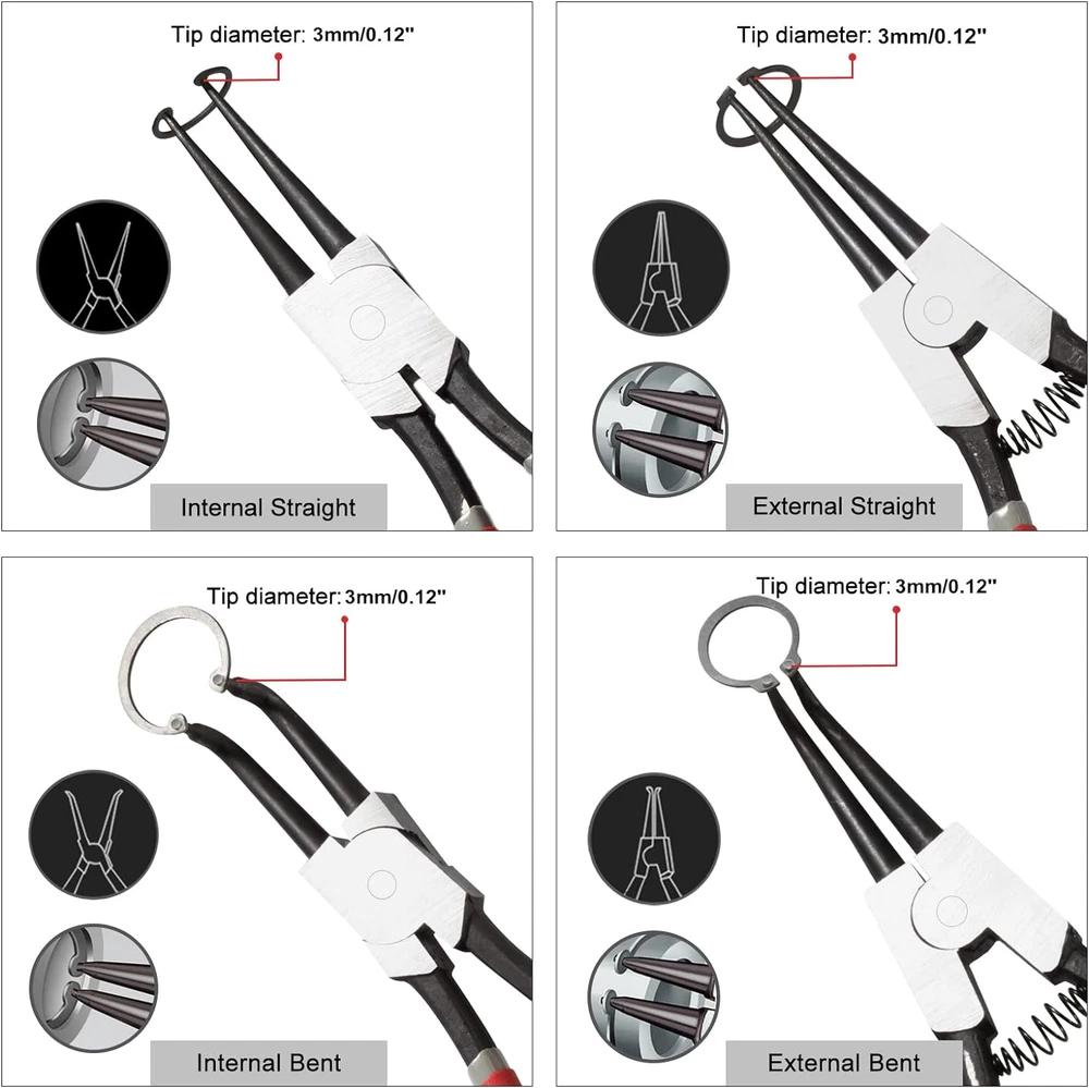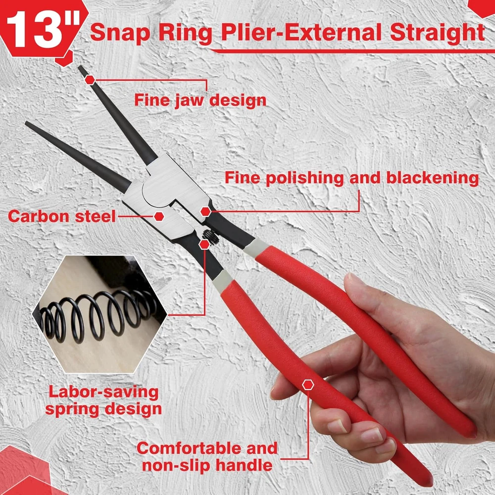 13-Inch Snap Ring Plier Heavy Duty External Circlip Pliers Straight Jaw Tip Diam