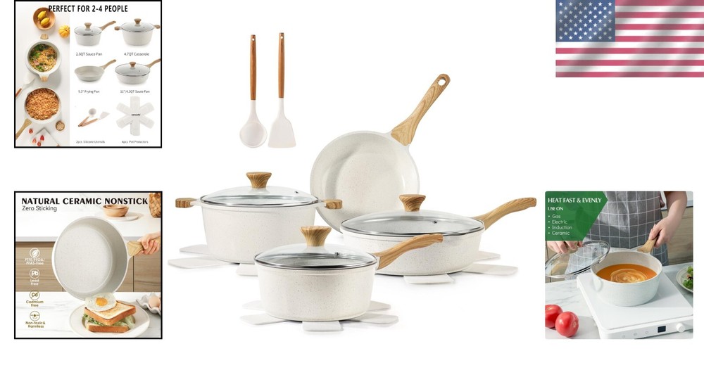 $ 45.01Pcs Pots and Pans Set Non Stick Ceramic Cookware Set,Healthy Toxic Kitchen Sets