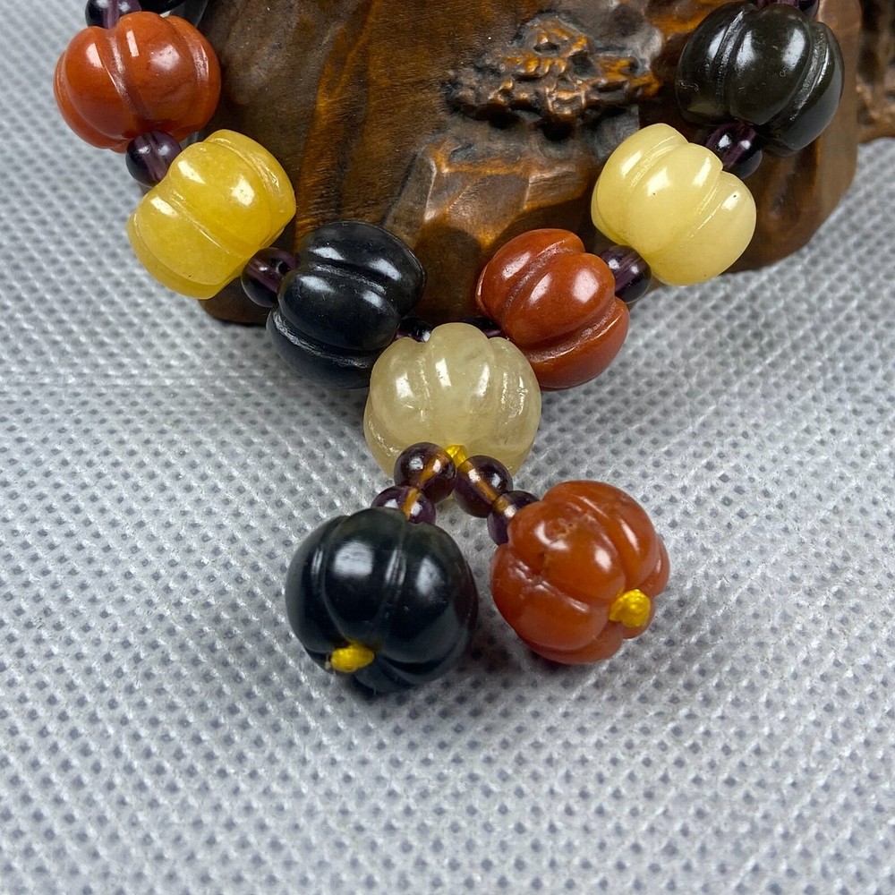 $ 21.658mm Buddhism Six Words Mantra Bracelets Black Obsidian Amulet Lucky Jewelry