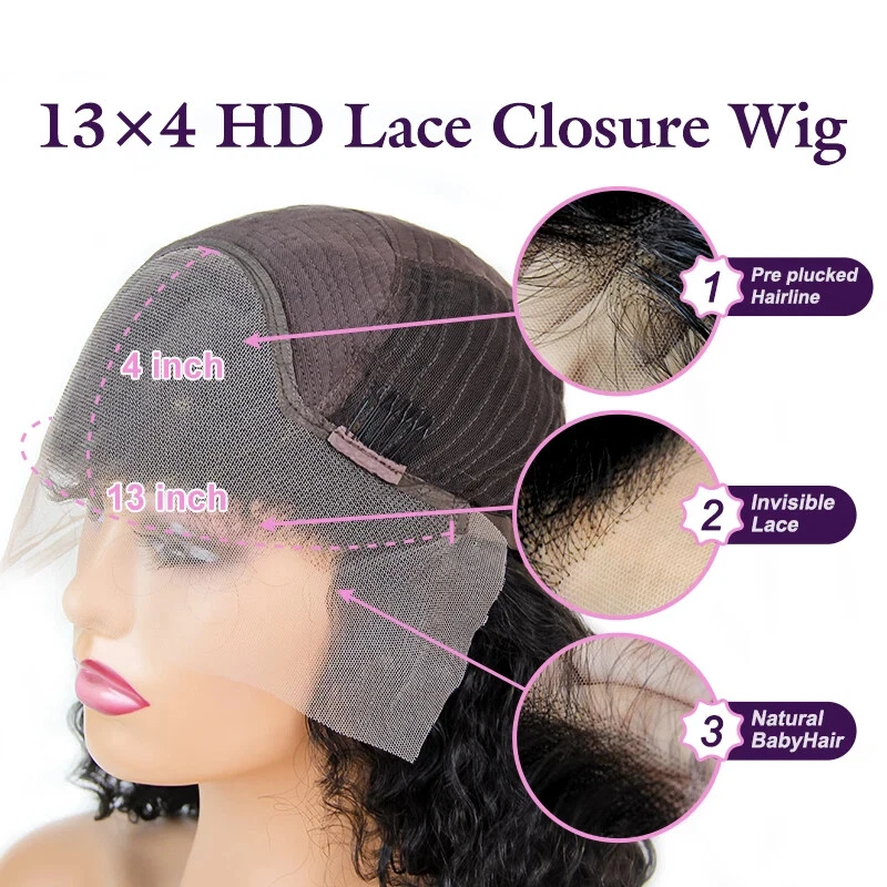 $ 56.14Water Wave Glueless Wig Pre-Cut Lace Wig PrePlucked Natural Black Human Hair Wig