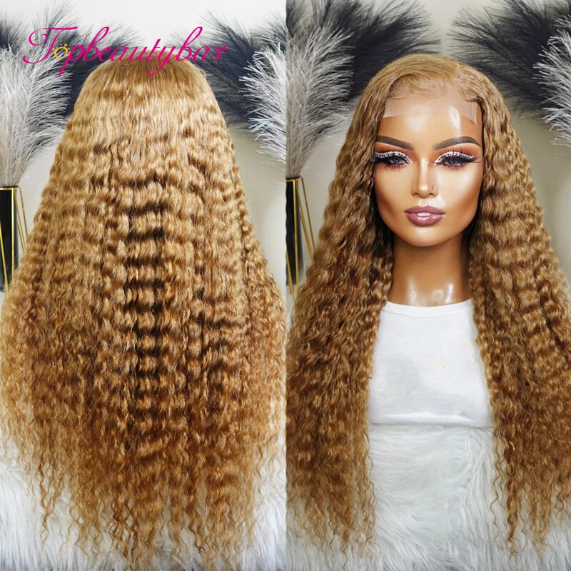 HD Lace 13x4 Lace Front Human Hair Wigs #27 Brazilian Curly Lace Frontal For Women PrePlucked 4x4 Closure Wig Bleached Knots