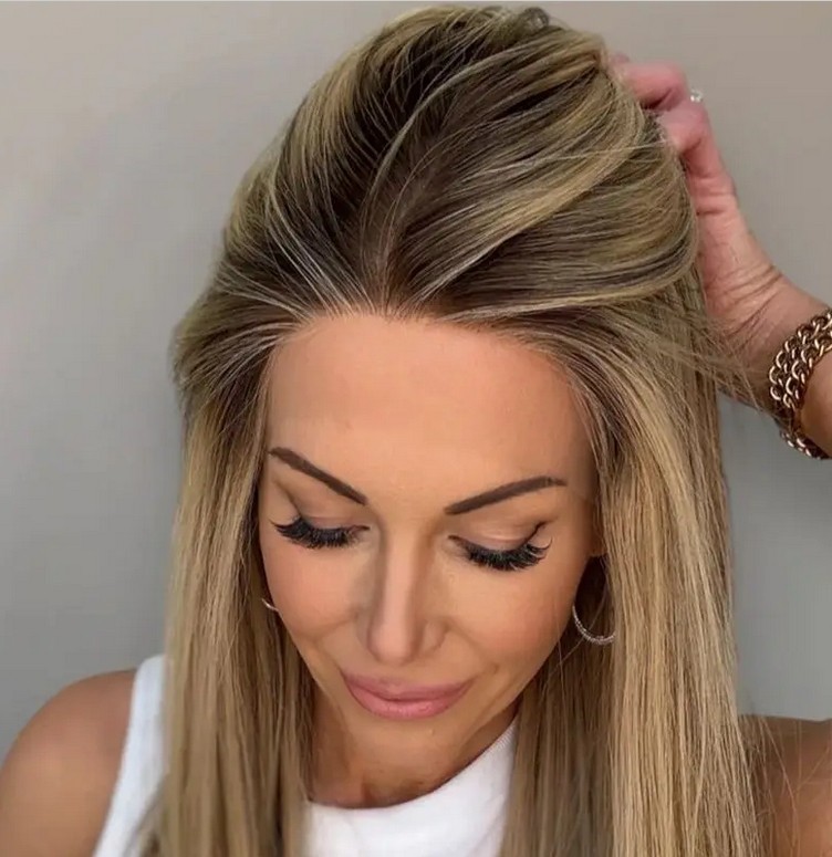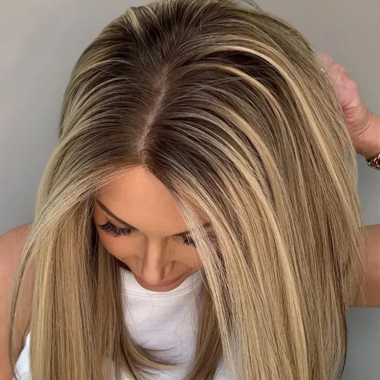 $ 95.43Ombre Blonde Ash Brown Highlight Wavy 13x4 Lace Front 100% Human Hair Wigs