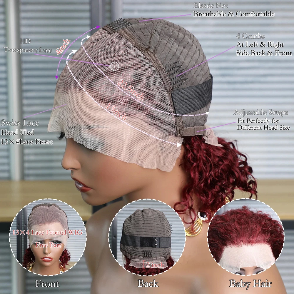 13x6 99J Straight HD Lace Front Wig short Bob wigs