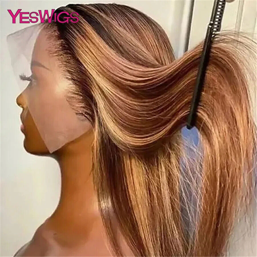 Highlight Wig Human Hair Ombre Honey Blonde Hd Lace Front Wigs For Women Brazilian 13x4 30 Inch Bone Straight Full Frontal Wig all for 1 real and free shipping