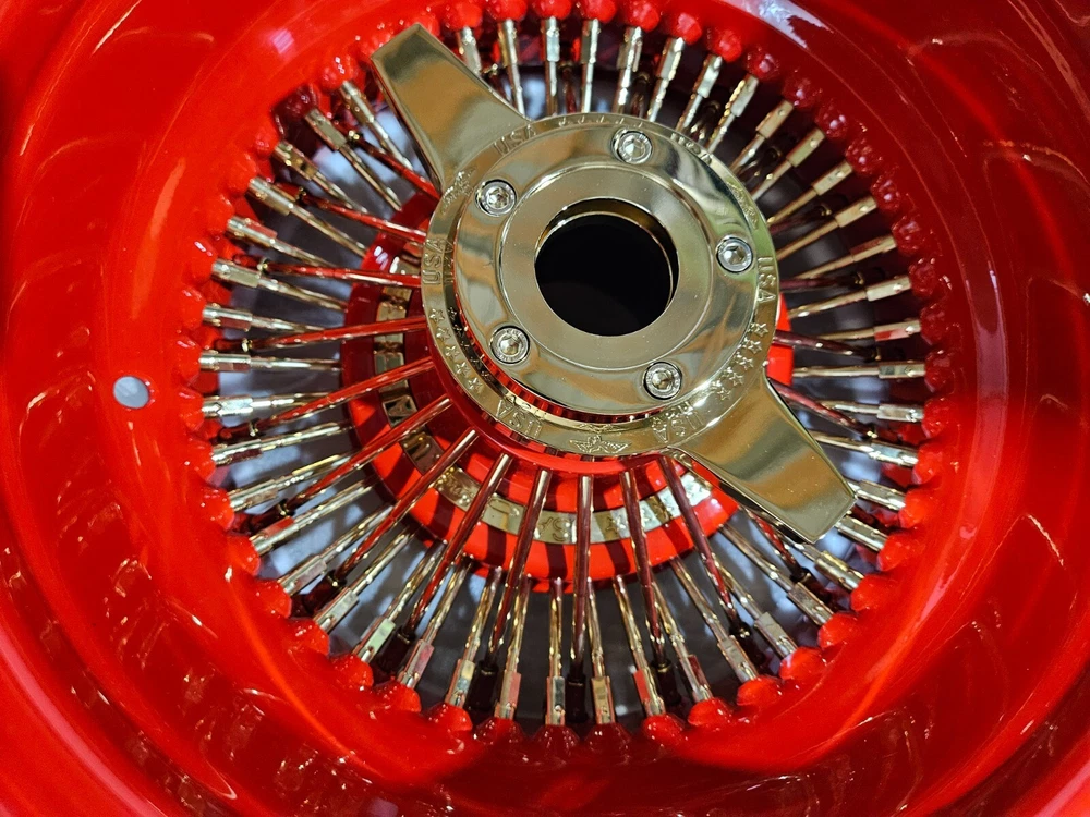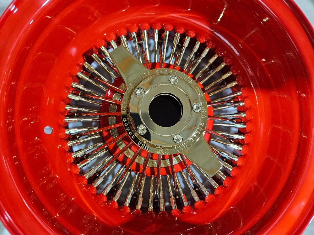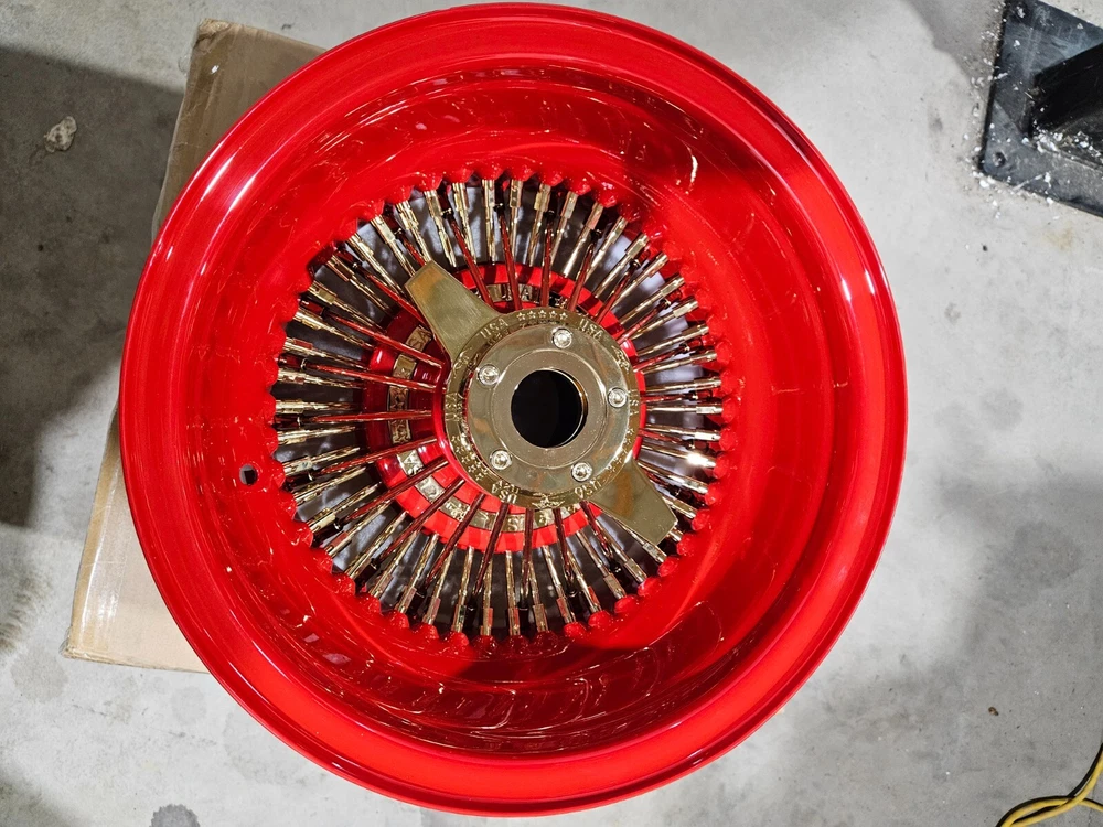 Welcome to Wheel Parts King. New Set of 4 wheels, BRIGHT red with gold spokes and knockoff 4 adapters with 5x5, 5x4.75 and 5x4.5 lug pattern 1 lead hammer The item shown in pictures is the exact item you are purchasing. Please add us to your favorites to see all of our great products that we will be adding. Thank you