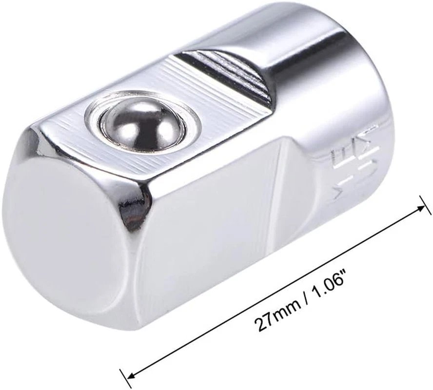【SIZE】1/4" (F) drive tools to 1/2" (M) drive sockets. 【CR-V STEEL】Made from heat treated chrome vanadium steel with chrome finish for extra durability and corrosion-resistant. 【SECURE HOLD ON SOCKETS】Chamfered ends and spring-loaded ball provide a secure hold onto sockets and prevents them from dropping. 【PRACTICAL】Notches in drive ends grips onto ratchets and extensions making it a perfect fit for any industrial, mechanic, or construction work. 【Corners】Corners inside drive avoid stress concentrations that can cause cracking, suitable for use with hand tools and is not recommended for use with electric or air tools Product Description Made from heat-treated chrome vanadium steel with chrome finish for extra durability and corrosion-resistant. Square design, you can quickly align socket to the fastener. Wide application in DIY hand-making, household maintenance, and most general repairs. Multi-function: Adapters and reducers can quickly convert your ratchet handle into the correct drive size for all fastener applications. Product Details Spring Loaded Ball Detent & Chamfered End Locks securely onto sockets and prevents them from being dropped for undisturbed work and improving accuracy and efficiency when working. Radius Corner Design Reduces wear and increases torque on fasteners by placing force on fastener walls rather than fastener corners, avoid stress concentrations that can cause cracking. Detent Grooves Four detent grooves in the socket drive end provide a secure connection with spring-loaded detent balls of a drive tool, ensures the sockets won't slide or drop.