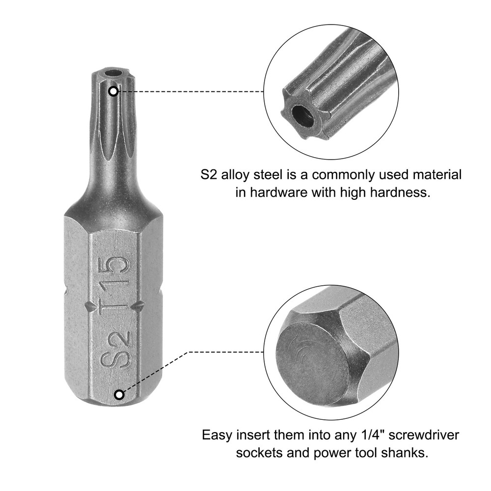 Torx Bits 1/4" Magnetic Screwdriver T10 Screw Driver Bit S2 Alloy Steel 25pcs