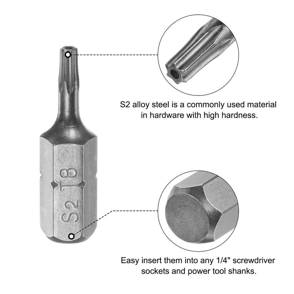 1/4 Inch Magnetic Torx T8 Screwdriver Bits S2 Steel 25pcs Set