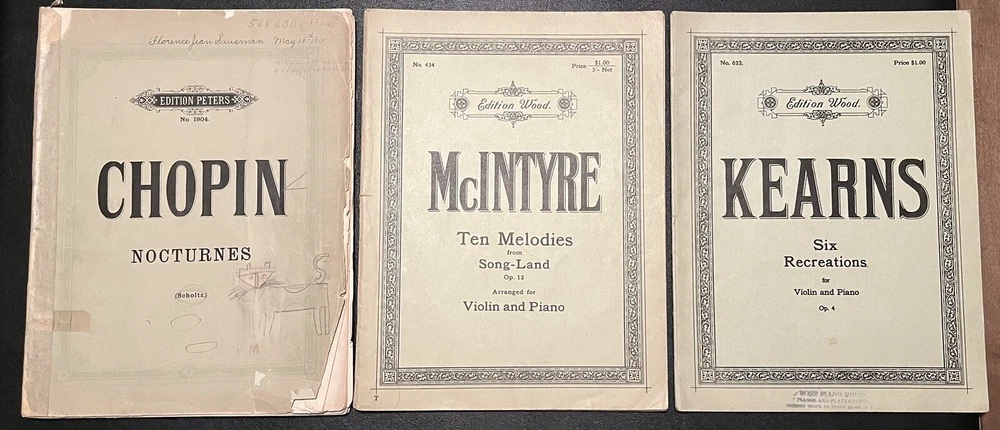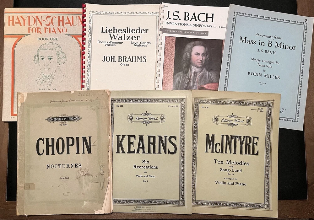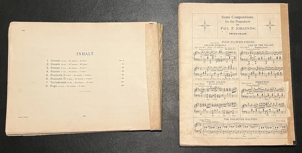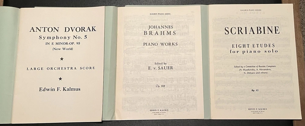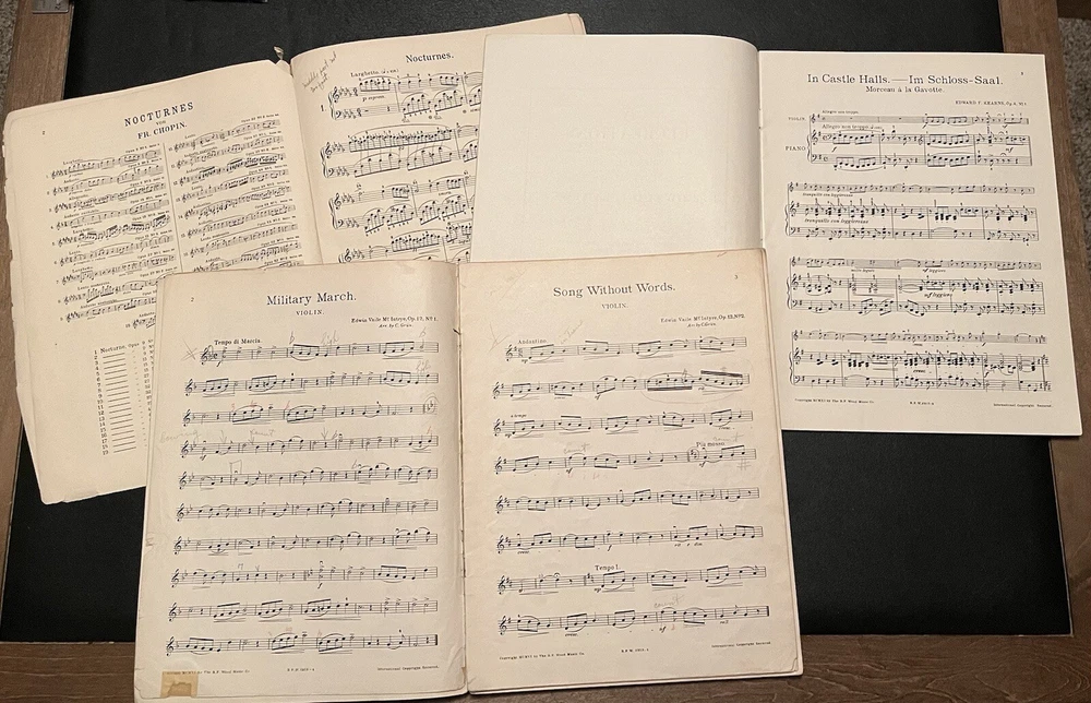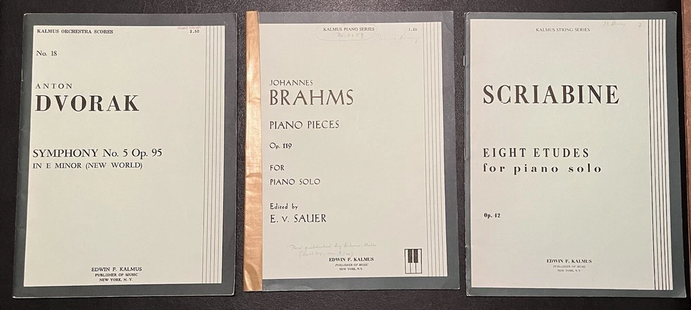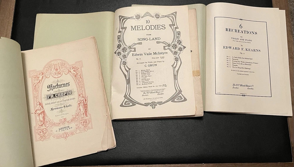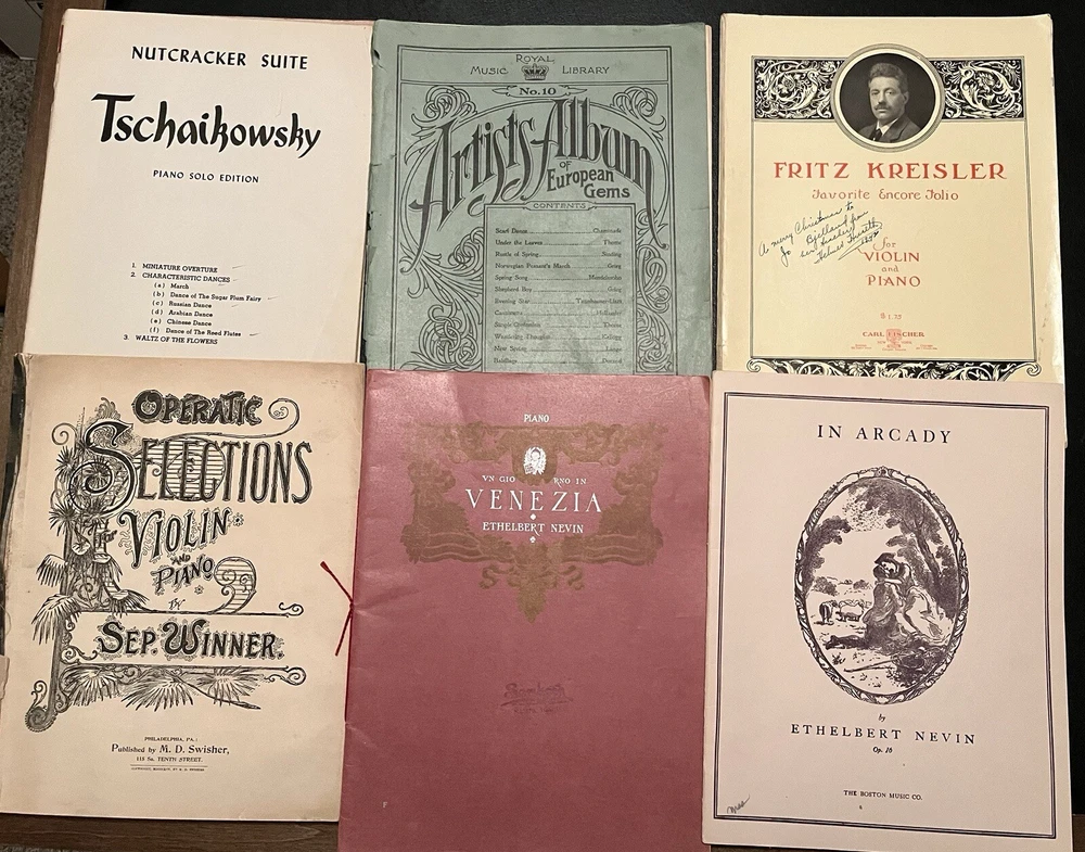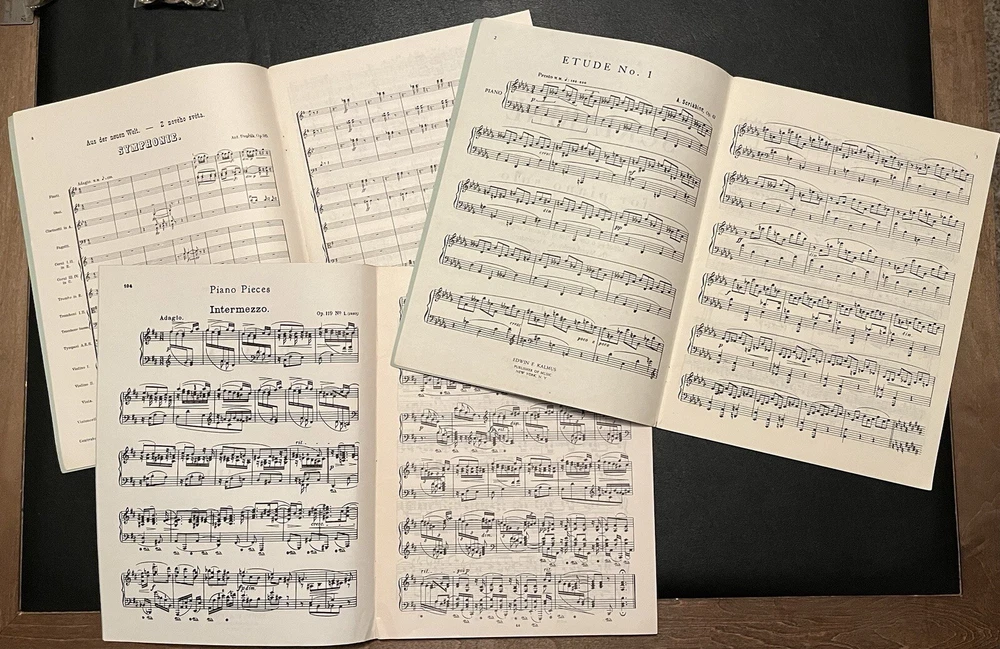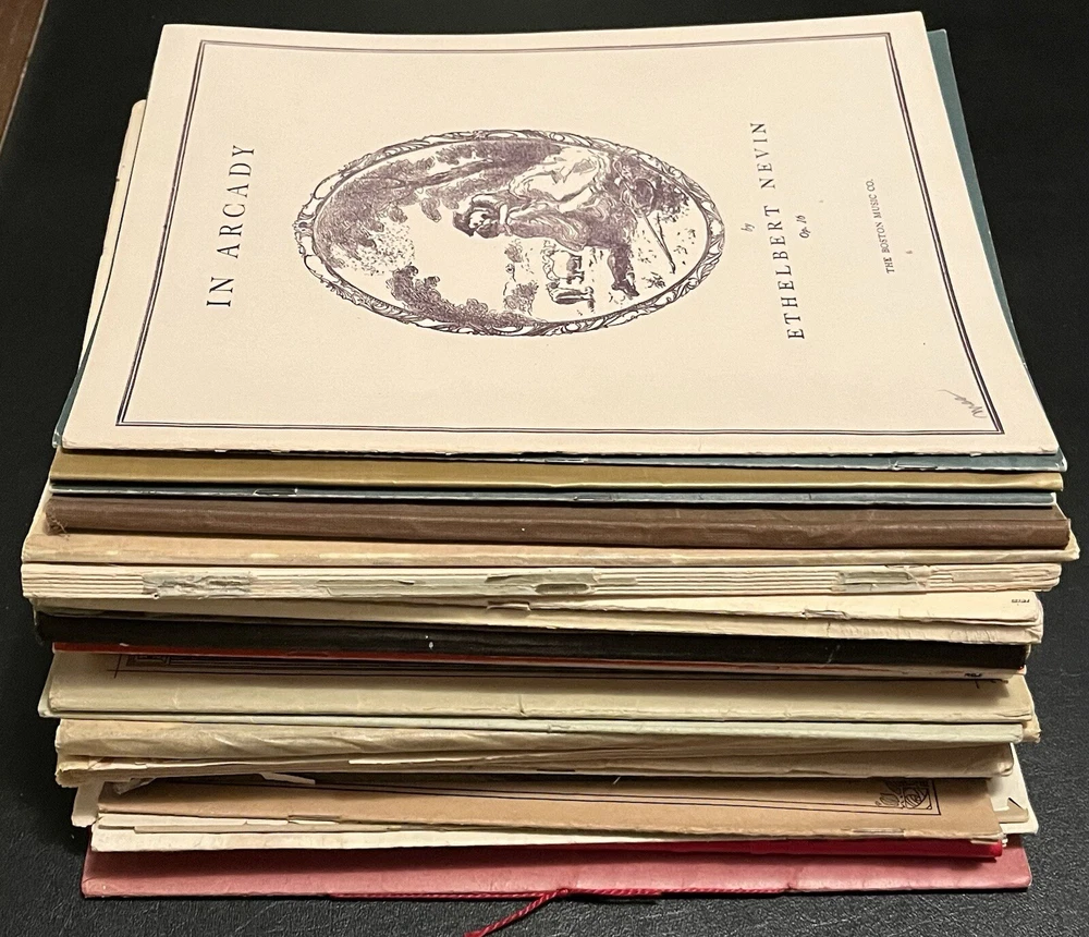 I am not able to combine shipping for this lot. * All sheet music listed for sale is the last of my Mom’s sheet music collection. Anything that doesn’t sell by November 30th will be donated. If you see anything you’d like to have please let me know. This listing is for 30+ various sheet music albums from classical composers. You will receive the following: - Edition Peters, No 1904, Chopin Nocturnes, 1910, Intact with markings & tape - Edition Wood, No 434, McIntyre, Ten Melodies from Song Land, 1916, intact with writing & tape - Edition Wood, No 622, Kearns, Six Recreations, 1911, intact, very good condition with no markings inside - Tschaikowsky, Nutcracker Suite, no date, cover detached, intact with markings - Artists Album of European Gems, Royal Music Library, No 10 - Fritz Kreisler Favorite Encore Folio - Operatic Selections for Violin & Piano by Sep. Winner. dated 1895, intact with no missing pages or markings (other than the red stain shown on two pages), although the outside of the book does show some wear - Venezia, Ethelbert Nevin - In Arcady by Ethelbert Nevin - Kalmus Orchestra Scores, No 18, Anton Dvorak, Symphony No 5 Op 95, no date, intact, very good condition with no markings - Kalmus Piano Series, No 3259, Johannes Brahms, Piano Pieces, Op 119, no date, intact with no markings inside but taped - Kalmus String Series, Scriabine, Eight Etudes for Piano Solo, no date, intact, very good condition with no markings - Haydn-Schaum for Piano, Book One, 1947, intact with markings - Liebeslieder Walzer, Joh Brahms - J.S. Bach, Inventions & Sinfonias, Alfred Masterwork Edition, 1991, intact with markings - Movements from Mass in D Minor, J.S. Bach, no date, intact, very good condition with no markings - Leybach, Pianoforte, Celebrated Compositions by J. Leybach, 1897, binding separating, some water damage, intact with no markings - Original Kompositionen, W.A. Mozart, Leipzig, C.F. Peters, no date, cover torn, some pages detached, intact with no markings - Rachmaninoff, Ten Favorite Compositions, 1946, intact, very good with no markings - Stern’s Edition, Favorite French Composers, No 21, 1907, intact with some markings - Trois Etudes De Concert for Piano Solo, Kalmus Piano Series 3628, no date, staining on first few pages, no pen/pencil markings on inside, complete - Recital Pieces - The Tunes Dad Whistled, Baldwin Piano Co, 1921, no markings - Ultra Modern Library, Collection of P.I. Tschaikowsky Piano Compositions, No 56, 1942, intact, very good condition with no markings - Franz Liszt Original Works and Transcriptions for the Piano, Valse de l’Opera Faust de Gounod, G. Schirmer, date? cover taped, has pencil markings, complete - Myra Hess Album, Piano Solo, Boosey and Hawkes, 1918, binding shows wear, no markings inside - Anthology of American Song, Low Voice, G Schirmer, 1911, cover separated, has markings inside - Perry's Musical Magazine, Vol 29 No 5, August 1910, some markings inside - Perry's Musical Magazine, Vol 29 No 6, September 1910, good condition with no markings inside - Perry's Musical Magazine, Vol 34 No 12, March 1916, cover detached, no markings inside - Perry's Musical Magazine, 45th year No 6, September 1926, cover detached, no markings inside - Perry's Musical Magazine, July 1936 No 4, cover and back torn, some pages stuck together, shows wear Total weight: 14+ pounds