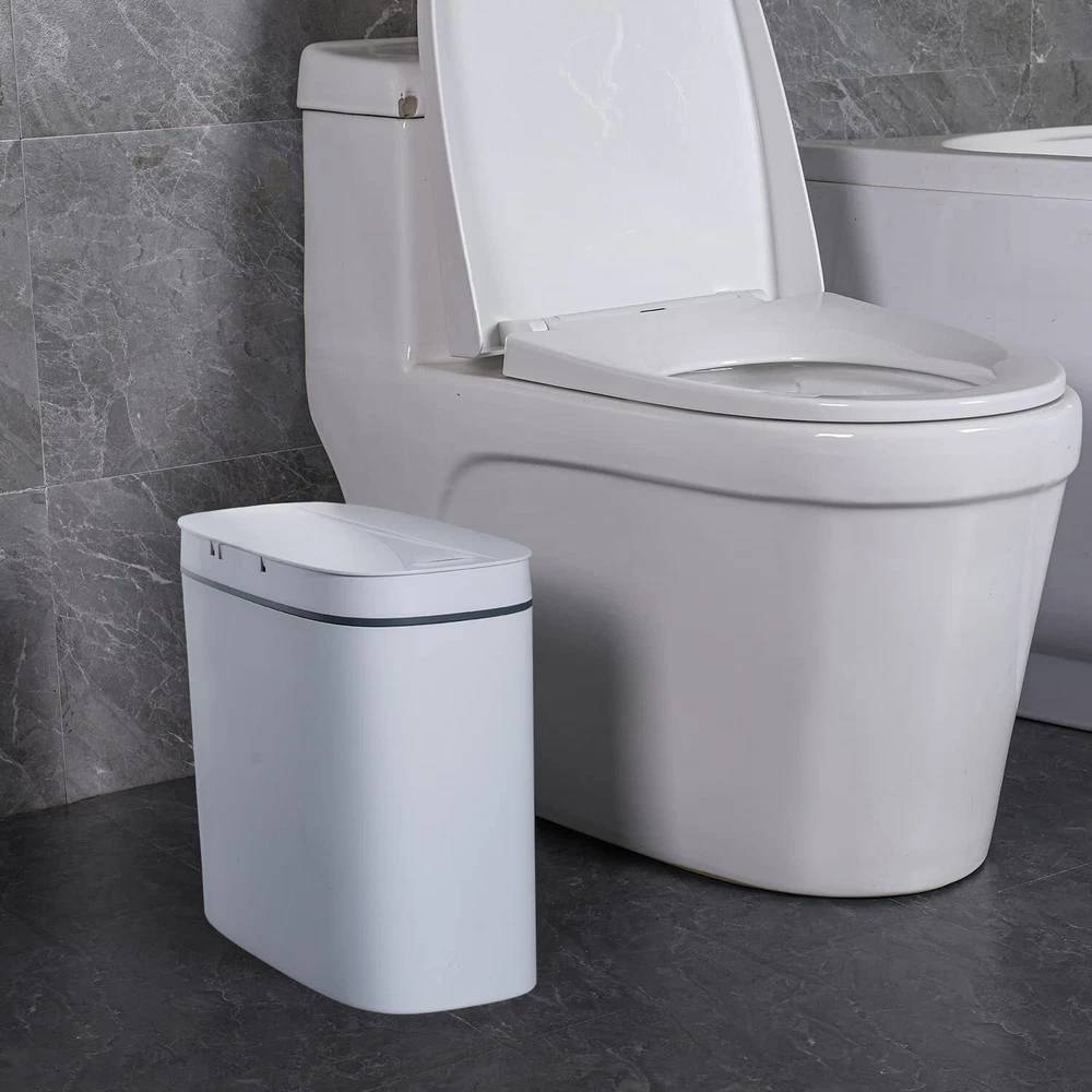 【AUTOMATIC TRASH CAN】Our touch free trash can used high technology induction device, whether it is sensing the proximity of a human hand or an object, You can also touch the trash can with your feet or hands,it can respond quickly to open the lid of the trash can, and automatically close the lid within 6 seconds after the trash is thrown in. 【BATHROOM TRASH CAN】Please install the battery before using this sensor automatic trash can,powered by 2 AA batteries (not included)and at the same time use waterproof and moisture-proof materials, it will not affect your use in the bathroom. 【FITS ALMOST ANYWHERE】 A stylish trash can with a modern slim design that looks great and easily fits into narrow openings and small spaces. Fits well in bathrooms, offices or wherever space is limited. 【Large Capability】The 3.6 Gallon (equal to 14 Liter) capability garbage bin can absolutely meet your daily need. it also suitable for living room, bedroom, and office or other various occasion. 【Dimension】12.2"W x 5.9"D X 12"H.This trash can makes a statement with its stylish colors and unique finishes and was designed to enhance your existing décor.The classic and simple design will never out of fashion.