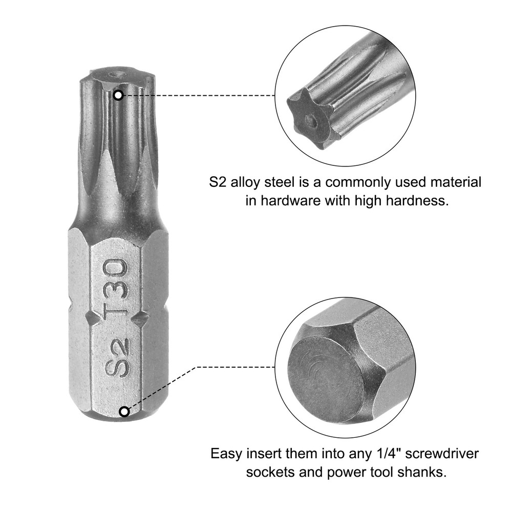 Document Description:* These Screwdriver Bits are with magnetic design.* Easy to install on the screwdriver handle with double ear on the sides of the bit shank.* Great replacement for missing, bent or broken torx screwdriver bits.* Superior Quality: Those Torx Screwdriver Bits are made of S2 alloy steel, which is a commonly used material in hardware with high hardness.* Magnetic Screwdriver - Those bits fit for electric screwdrivers, hand screwdrivers, electric drills, air drills and so forth.Features:Hex Shank Size: 1/4-inchTotal Length: 25mm / 1-inchBit Type: T30Surface Treatment: SandblastingMaterial: S2 Alloy SteelPackage Content: 1pcs x Torx Screwdriver Bit Torx Bits 1/4" Magnetic Screwdriver T30 Screw Driver Bit S2 Alloy Steel Description: * These Screwdriver Bits are with magnetic design. * Easy to install on the screwdriver handle with double ear on the sides of the bit shank. * Great replacement for missing, bent or broken torx screwdriver bits. * Superior Quality: Those Torx Screwdriver Bits are made of S2 alloy steel, which is a commonly used material in hardware with high hardness. * Magnetic Screwdriver - Those bits fit for electric screwdrivers, hand screwdrivers, electric drills, air drills and so forth. Features: Hex Shank Size: 1/4-inch Total Length: 25mm / 1-inch Bit Type: T30 Surface Treatment: Sandblasting Material: S2 Alloy Steel Package Content: 1pcs x Torx Screwdriver Bit Hot Item Payment 1.We accept eBay payment . 2.Payment must be received within 7 business days of auction closing. Shipping 1.We ship to your eBay or Paypal address. Please make sure your eBay and Paypal address is correct before you pay. 2.Items will be shipped within 1-3 business day when we received payment. 3.Delivery time depends on destination and other factors. Description Policy Torx Bits 1/4" Magnetic Screwdriver T30 Screw Driver Bit S2 Alloy Steel Description: * These Screwdriver Bits are with magnetic design. * Easy to install on the screwdriver handle with double ear on the sides of the bit shank. * Great replacement for missing, bent or broken torx screwdriver bits. * Superior Quality: Those Torx Screwdriver Bits are made of S2 alloy steel, which is a commonly used material in hardware with high hardness. * Magnetic Screwdriver - Those bits fit for electric screwdrivers, hand screwdrivers, electric drills, air drills and so forth. Features: Hex Shank Size: 1/4-inch Total Length: 25mm / 1-inch Bit Type: T30 Surface Treatment: Sandblasting Material: S2 Alloy Steel Package Content: 1pcs x Torx Screwdriver Bit Hot Item Payment 1.We accept eBay payment . 2.Payment must be received within 7 business days of auction closing. Shipping 1.We ship to your eBay or Paypal address. Please make sure your eBay and Paypal address is correct before you pay. 2.Items will be shipped within 1-3 business day when we received payment. 3.Delivery time depends on destination and other factors.