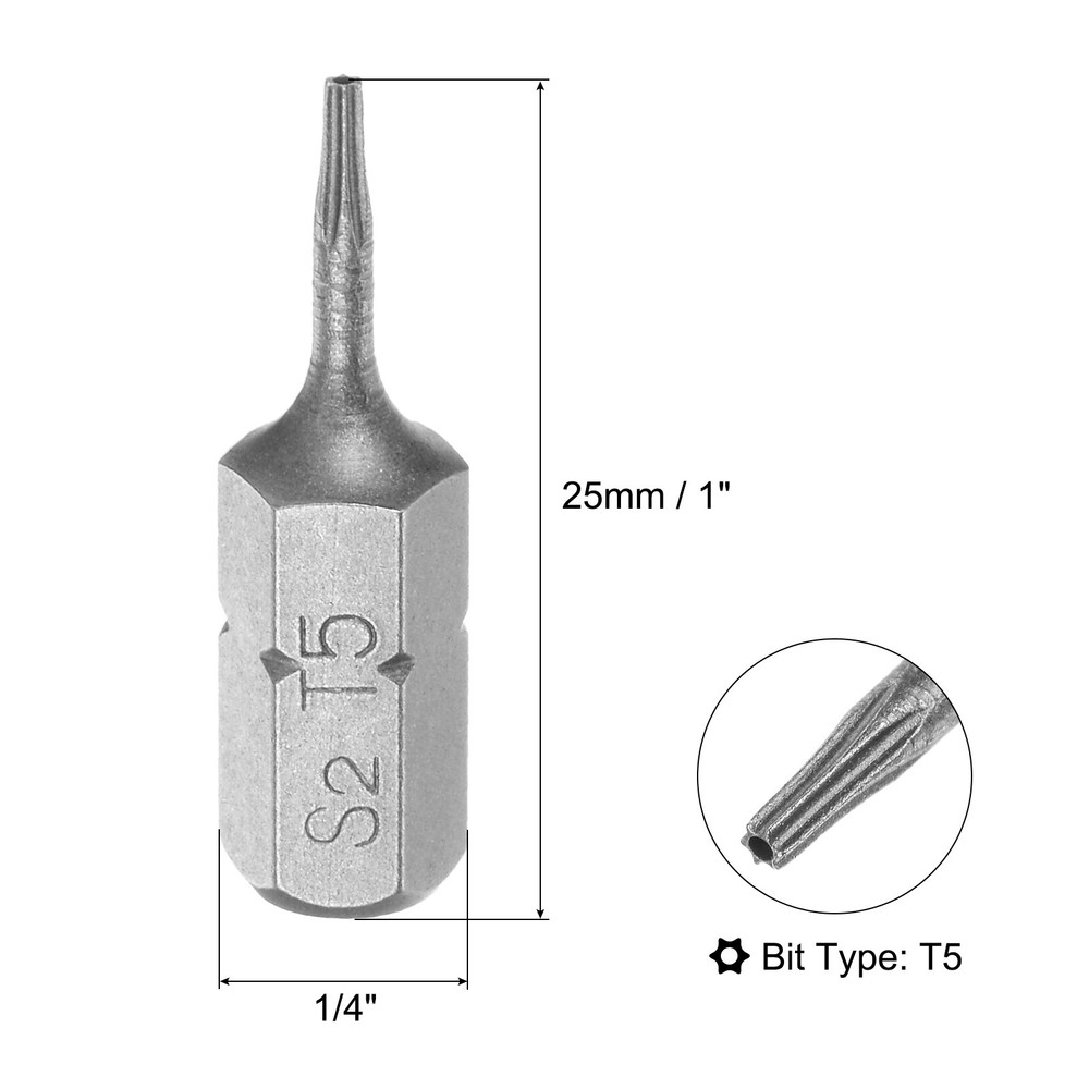 1/4" Magnetic Torx T5 Screwdriver Bits - S2 Alloy Steel - 4pcs Set