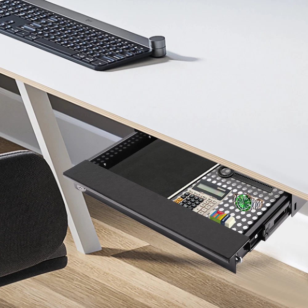 Specification Color: Black Style: Modern Material: Iron Process: Welding and Plastic Spraying Shape: Rectangular Mount Type: Under Table Mount Applicable Table Thickness: 20mm/0.79in Product Inner Size: 35*33.8*4.57cm/13.78*13.31*1.8in Product Outer Size: 37.6*44.6*5.5cm/14.8*17.56*2.17in Package Size: 41*48*8cm/16.14*18.9*3.15in Load Capacity: 2kg/4.4 lbs Net Weight: 2.5kg/5.5 lbs Gross Weight: 3kg/6.6 lbs Package Included 1* Sliding Pull-out Drawer 2* Keys 14” Modern Sliding Pull-out Drawer Storage Organizer for Standing Desks Black Description Description Declutter your workstation and enjoy a clean space with this sliding pull-out drawer . You can access your materials without disturbing office neighbors thanks to the quiet, smooth sliding mechanism, and the sleek design blends well with a majority of environments whether at home or in the office. Buy it quickly and enjoy a more convenient life. Key Features Sturdy and Durable: It is made of high-quality iron with welding and plastic spraying processes, which is non-toxic, odorless, anti-corrosion, and rust-resistant , ensuring its beauty and long-term use. Excellent Organizer: You can put your mouse, charger, sticky notes, etc. in it, and can be used at hand, bringing convenience at the same time can also make your desktop more neat! Maximize Your Desk Space: You can hide it under the table, and it does not take up space in your space and can store a variety of items so that your desktop is not messy. Thoughtful Design: You can retrieve your items quickly and quietly with its smooth sliding mechanism without disturbing others. In addition, the locking and enclosed design ensures that the items you place are secure and protected from dust. Ready to Go: The one-piece structure and pre-drilled holes allow you to install it directly after receiving it, which is very time-saving and convenient! Easy to Clean: Thanks to its simple construction and smooth surface, you can wipe the stains off its surface with a damp rag. Ideal Gift: Thanks to its practicality and beauty, you can give it to your friends as a holiday or housewarming gift! Protective Package: We use pearl cotton to package this product to minimize damage to the product during transportation. Details Rounded Edges: The smooth and rounded edges are comfortable to touch and improve the safety of use. Fixing Screws: They make this product structure more stable to store your writing utensils and office supplies with assurance. Heat Sinks: It ensures air circulation to keep the items you place fresh and safe. Application It is installed under the table to store various items, such as a keyboard, mouse, books, iPad, phone, pen, pencil, glue, eraser, adapter, earphone, cosmetics, or other small items used regularly. It is designed to fit both standing desks and standard fixed-height workstations. It's designed for 14-inch laptops or smaller. Specification Color: Black Style: Modern Material: Iron Process: Welding and Plastic Spraying Shape: Rectangular Mount Type: Under Table Mount Applicable Table Thickness: 20mm/0.79in Product Inner Size: 35*33.8*4.57cm/13.78*13.31*1.8in Product Outer Size: 37.6*44.6*5.5cm/14.8*17.56*2.17in Package Size: 41*48*8cm/16.14*18.9*3.15in Load Capacity: 2kg/4.4 lbs Net Weight: 2.5kg/5.5 lbs Gross Weight: 3kg/6.6 lbs Package Included 1* Sliding Pull-out Drawer 2* Keys Notes Please check that the desktop type is appropriate before purchasing. Please note that this product does not contain any other items shown in the picture. Please ensure that your desk can support the total weight of the drawer and load capacity. Please allow the slight color difference caused by the shooting light and 1-3cm error due to manual measurement and make sure you do not mind before ordering. Payment Delivery details Terms of sales About us Contact us Payment We accept ebay payment 。 Fees such as import duties, taxes are not included in the item price or shipping costs. These charges are the buyer's responsibility. Delivery details Shipping: 2-9 working days to: USA Terms of sales We maintain high standards of excellence and strive for hundred percent customer satisfaction. Feedback is very important to us. We hope that you contact us immediately before you give neutral or negative feedback, so that we can address your concerns. It is impossible to address issues if we do not know about them! About us Your satis faction is our ultimate goal. We work hard to earn your trust and future business. Our certified technicians have tested each item before shipping. The unit comes with 1 year limited warranty on all manufacturing defects. a) If you receive a defective item, you may return it or ask for a discount. Please contact us within 14 days after you receive the package. b) What you returned must be intact and in its original packaging as re? u. Customer is responsible for shipping costs of the returned item. c) We will cover the cost of shipping back t with the shipping rate indicated in the registration page. We will send you a new unit or refund the full payment you paid. Thank you. Contact us Business Hour Business Hour: Monday To Friday: 8:30 AM to 5:00 PM (Beijing China time) Due to time zones, our reply to your questions may not be immediately. But within above working time, we will reply your email within 24 hours. If it's non-workdays, please kindly be patient and wait till Monday. Please contact us with ebay message. Please feel free to contact us if you have any questions. Monday To Friday: 8:30 AM to 5:00 PM (Beijing China time) Due to time zones, our reply to your questions may not be immediately. But within above working time, we will reply your email within 24 hours. If it's non-workdays, please kindly be patient and wait till Monday. Please contact us with ebay message. Please feel free to contact us if you have any questions. Brand Unbranded Type / Material Iron Color Black MPN Does not apply Style Modern Process Welding and Plastic Spraying Shape Rectangular Mo