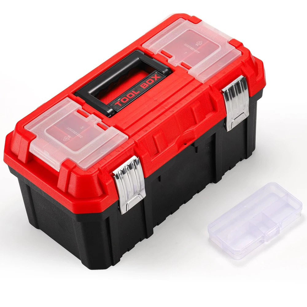 14" Tool Box, Heavy Duty Plastic Storage Boxes, Small Red Toolbox with Handle...