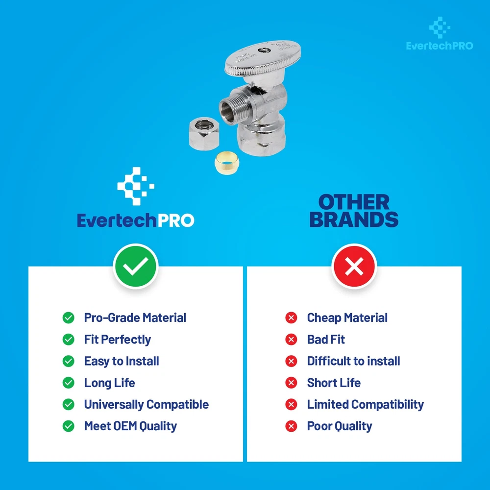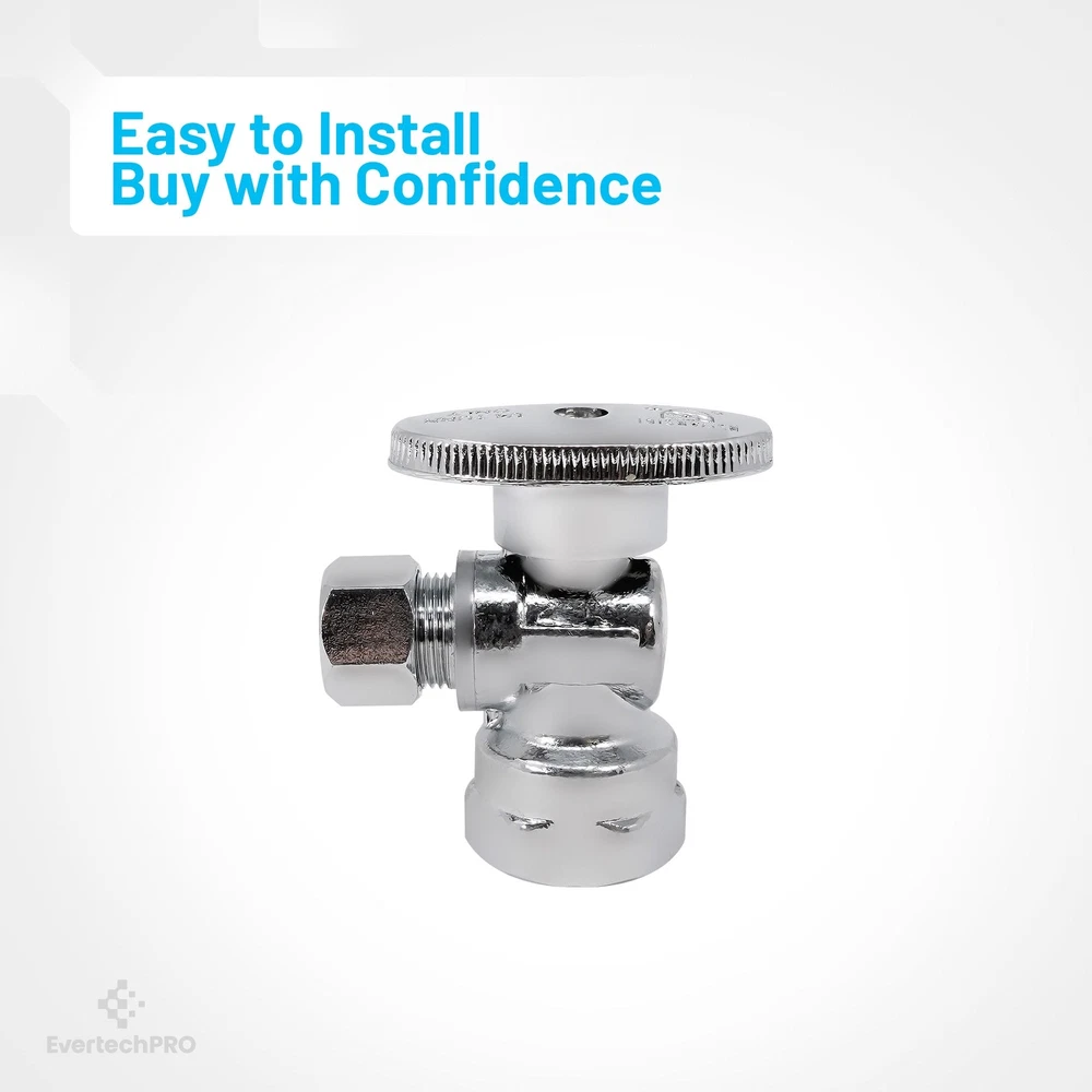 Introducing our high-quality 1/4 Turn Angle Stop Valve, a remarkable addition to your plumbing needs. Engineered with superior precision, this 1/2 water valve x 3/8 OD compression valve ensures efficient and reliable water control. Our 1/4 compression valve is an essential component designed to provide a secure shut-off mechanism for various plumbing applications. The chrome-plated finish of the angle stop valve offers not only an aesthetic appeal but also contributes to its longevity by resisting corrosion and tarnish. The 1/4 turn shut-off valve guarantees a quick water flow cut-off, making it an ideal choice for time-sensitive situations like leaks or repairs. This compression fitting valve also works as a toilet water valve, providing an efficient shut-off mechanism for your toilet water supply. It can also function as a sink shut off valve, securing your faucet valves when necessary or toilet water supply valve. With a 1/2 inlet and a 3/8 outlet, this brass craft angle valve 1/2 x 3/8 compression is perfect for a wide range of plumbing projects. The versatile angle valve can be used as a toilet shutoff valve, a kitchen sink valve, or even a bathroom sink water supply shutoff valve. Whether you need a faucet cut off valve, a sink ball valve, or a water stop valve, this product has got you covered. The 1/2 compression shut off valve is designed to fit a wide array of plumbing supplies valves, making it a must-have for every household's plumbing fixture shutoff valve needs. Our stop valve stands out for its superior functionality, serving as a toilet water valve shutoff, a kitchen water valve, or a sink valve shut off. Whether you are fixing your toilet plumbing valve, replacing your bathroom sink valves, or installing a new kitchen sink valve, our 1/4 turn angle valve 1/2 inlet 3/8 outlet will provide seamless operation. In conclusion, this compression valve is a high-quality, versatile fixture that meets a variety of plumbing needs. From acting as a toilet shutoff to serving as an under sink shutoff valve, its functionality is unparalleled. Choose our 1/4 Turn Angle Stop Valve for reliable and efficient water control.