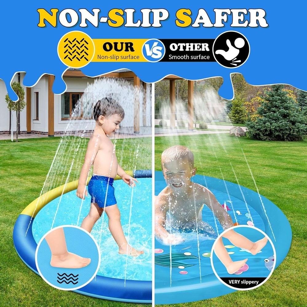 This splash pad is an absolute game-changer for summer fun! The non-slip surface gives me total peace of mind while the kids and our dog go wild splashing around. It's noticeably thicker and sturdier than others we've tried - definitely worth every penny for hours of backyard entertainment!
