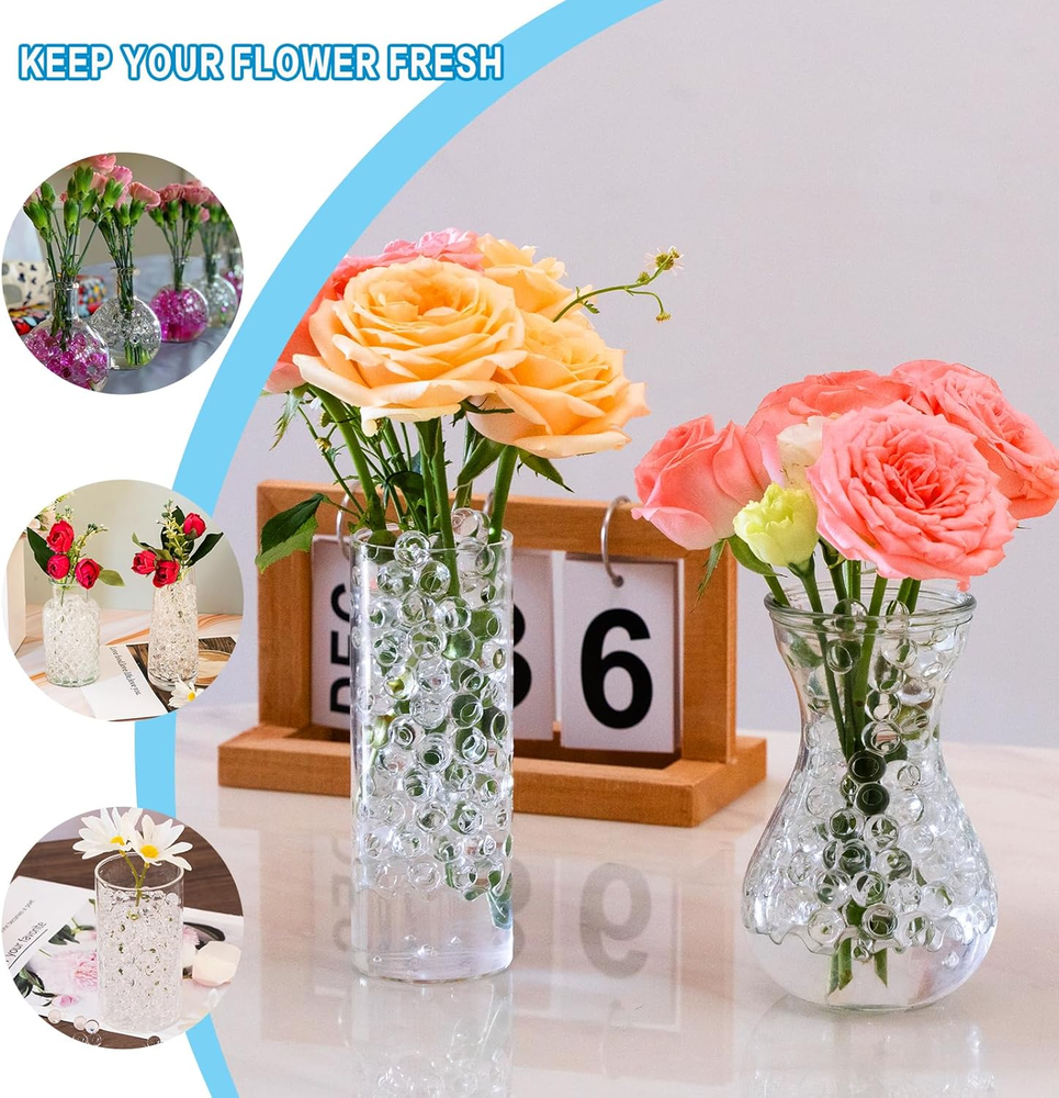 140,000 Clear Water Beads for Vases, Vase Filler Water Gel Beads, for Making Pearls Candles Centerpiece, Wedding Centerpiece, Floral Arrangement, Christmas Decoration Easy To Use: Soak in pure water for a few hours before use, They will grow to 11-13 mm in about 4-6 hours,They are suitable for Christmas decorations, anniversary decorations, home party decorations, and wedding centerpieces Widely Used: Flower beads are the perfect vase fillers, suitable for making beads for centrepiece vases, as well as for Making Pearls Candles Centerpiece or flower arrangement decorations,They can also be used in plant cultivation to help keep the soil moist Product Features: Clear beads are made from high quality materials, characterized by good toughness and high elasticity, not easily deformed, and reusable Easy To Clean: The surface of the clear beads is smooth, not easy to get dust and dirt, easy to clean.But please keep out of direct sunlight. Do not dispose of it in the drain, toilet, or any other pipe to avoid clogging Please Note: Our products are for adult use only, for vase filling decoration and plant preservation. This product is not to be swallowed or ingested, Please store these securely and away from people under 14 years of age to avoid accidental access Product Description Wedding Centerpiece, Floral Arrangement ORIKASO Clear Water Beads for Vases Good for vase fillers, in centerpieces for weddings, large parties and anniversary decorations. These clear water Beads will make your overall decoration look more unique. The video showcases the product in use. The video guides you through product setup. The video compares multiple products. The video shows the product being unpacked. How To Use Merchant Video ORIKASO Perfect Present Idea Add to Cart Add to Cart Add to Cart Add to Cart Add to Cart Add to Cart Add to Cart Customer Reviews 4.5 out of 5 stars 857 4.4 out of 5 stars 111 4.4 out of 5 stars 111 4.4 out of 5 stars 111 4.4 out of 5 stars 111 4.4 out of 5 stars 111 4.4 out of 5 stars 111 Price $8.99 $ 8 . 99 $12.99 $ 12 . 99 $12.99 $ 12 . 99 $13.99 $ 13 . 99 $13.99 $ 13 . 99 $13.99 $ 13 . 99 $13.99 $ 13 . 99 Safe Materials ✔ ✔ ✔ ✔ ✔ ✔ ✔ Well Packaged ✔ ✔ ✔ ✔ ✔ ✔ ✔ Exquisite Details ✔ ✔ ✔ ✔ ✔ ✔ ✔ Indoor/Outdoor ✔ ✔ ✔ ✔ ✔ ✔ ✔ High Quality ✔ ✔ ✔ ✔ ✔ ✔ ✔ Item model number WBVFclear10 Color Clear Country of Origin China Item Weight 11.7 ounces Package Dimensions 8.86 x 5.94 x 0.63 inches Size 140,000Pcs Shipping Fast shipping is very important for us. Returns and payment FeedBack Your feedback very important to us, after you get your package and you are satisfied with our service please leave us positive feedback If you have any problem with your order / any questions please before leave any type of feedback For any questions, using eBay contact system Please visit our eBay store to check out other items for sale! Thank you for shopping at our store.