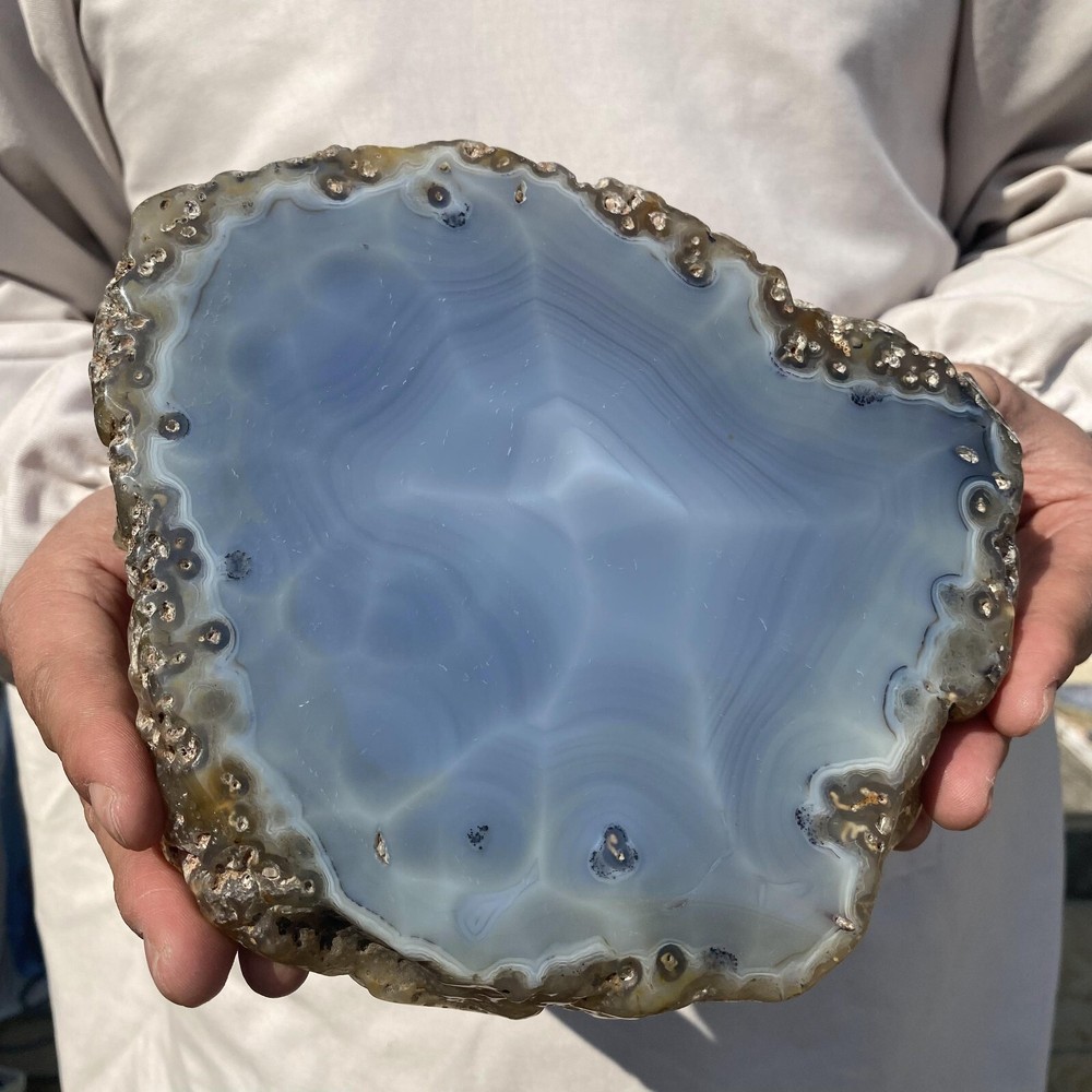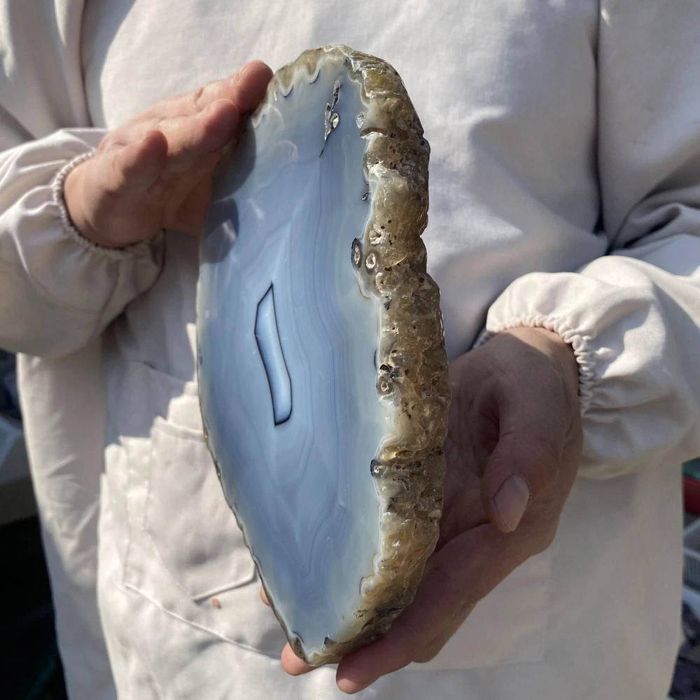 You will receive the Real Item as shown in the pictures. The item was photographed in the sun Natural Blue Agate Banding Slab Polished Crystal Chalcedony Healing Reiki Weight: 1450 g=3.1LB Size: 194.5mm*169mm*24.5mm (1inch=25.4mm 1lb=453.6g) *Please "Save this seller" , I will continue to publish new items for you to choose from. *Buyers first add items to your own eBay Shopping Cart to purchase multiple items with a single payment.I'll give you the best discount. *We strive to achieve a 5 stars rating for each every transaction. If you are not 100% satisfied, please contact us first so that we can resolve your problem. PLEASE don't leave a neutral or negative feedback before giving us the opportunity to help you. Shipping: We Ship to WorldWide: Items will be send out within 1 to 2 working days after payment received. Logistics providers choose suitable and fast logistics channels to send items (speedPAK Fedex DHL UPS TNT). United States (except in remote areas) 10-20 working days Europe 15-25 working days We will use china Post Air Parcel Service Our shipping speed depends on the efficiency of the Customs and the shipping company. Thank you for your understanding and patience. If you did not receive your items in the expected time, please contact us first, and we'll solve the problem at once. Payment: Payment methods are now centrally managed by eBay. Is very safe and reliable.If there is international Customs duties, buyers will be responsible for it. Return policy: Our Store offers a 30 days (from buyer received) return and exchange policy. If you're not 100% satisfy with our products, you can return them within 7 days for a full refund (Price + Shipping cost , the shipping back fees not include) or for an exchange. We will ship the replacement once we have received and processed the returned item. If you request for a refund, we will notify you via Email of your refund once we have received and processed the returned item. Please contact us before you open a case or leave a Negative, Neutral feedback. No matter what problem you have, we will solve it carefully and quickly. Thank you for your understanding and magnanimity. Buyer Feedback : I thanks every Ebay buyer for their positive feedback and we will leave feedback to you for orders which have completed and have left positive feedback to us. I value every buyer's feedback very much.Please contact us before leaving any negative or neutral feedback, I would like the opportunity to correct any problems. If you have any other questions, please don't hesitate to ask. Be sure to follow our store to keep up with our amazing deals!