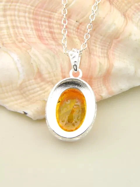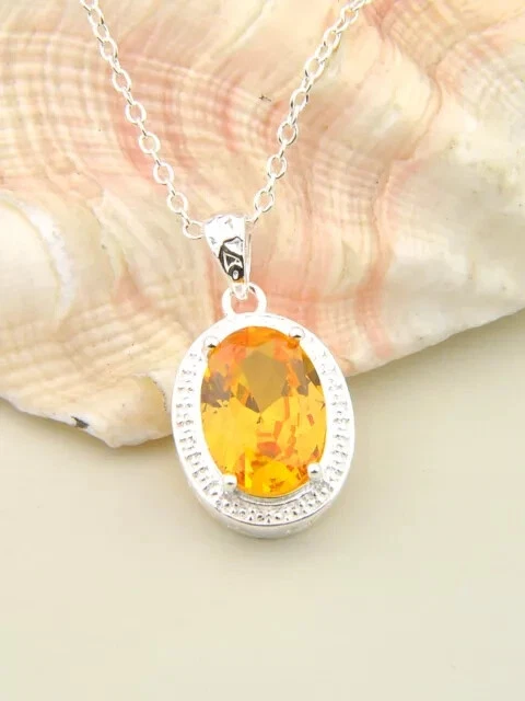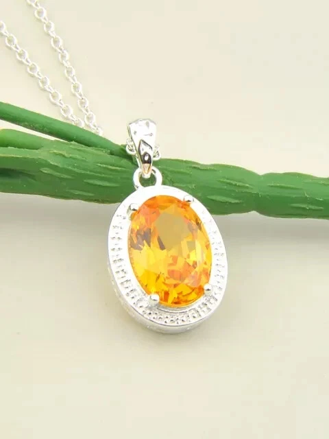 14K White Gold Plated With Chain 2Ct Oval Cut Simulated Citrine Women's Pendant
