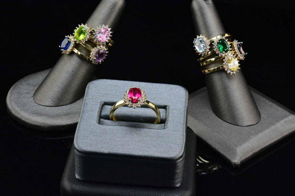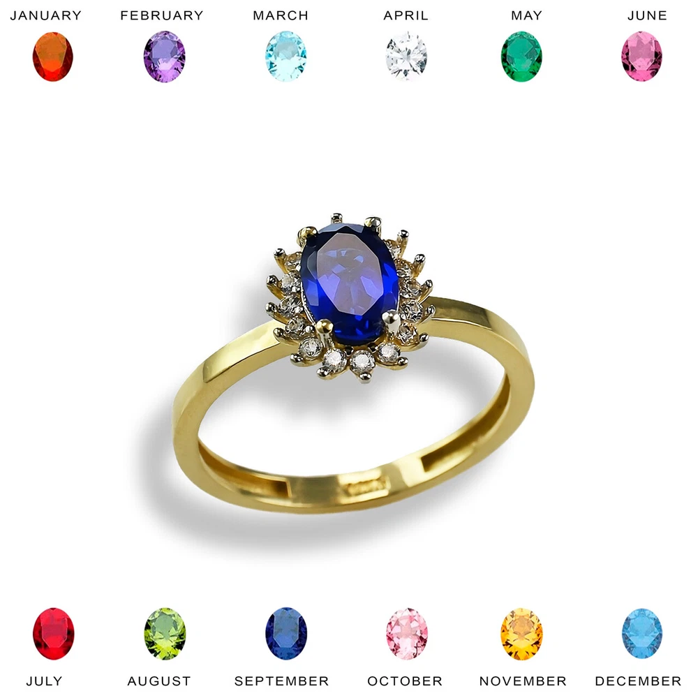 Yellow Gold Birthstone CZ Engagement Promise Ring - Personalized Color Stone Promise Ring. Discover the timeless beauty of the Elegant Yellow Gold Birthstone CZ Engagement Promise Ring. This exquisite piece features a dazzling cubic zirconia gemstone, symbolizing eternal love and commitment. Crafted in premium yellow gold, this ring is perfect for engagements, promises, or special occasions. Available in various birthstones to personalize your love story. Product Overview Metal: 14k Yellow gold. Weight: ≈2g. Top width: 0.37" (9.4 mm). Bottom band width: 0.08" (2.1 mm). Finish: polished. Gender: women's. Stones: Cubic Zirconia (17x). Center stone: 1x oval birthstone; surrounded by 16x small round clear CZs. Center stone available in all 12 month's birthstone colors: Garnet red (January) Amethyst purple (February) Aqua blue (March) Clear Zirconia (April) Emerald green (May) Alexandrite violet (June) Ruby red (July) Peridot green (August) Sapphire blue (September) Pink Zirconia (October) Citrine yellow (November) Topaz blue (December). Payment All Ebay accepted payments. Domestic Shipping Shipping services provided by Fedex and USPS. Order tracking will be updated. International Shipping Import duties taxes and fees are NOT INCLUDED in the item price or shipping charges. Fees charged by customs are the buyer's responsibility. Please check with your country's customs office to determine what these additional costs will be prior to bidding / buying. These charges are normally collected by the delivering freight (shipping) company or when you pick the item up ? Please do not confuse them for additional shipping charges.
