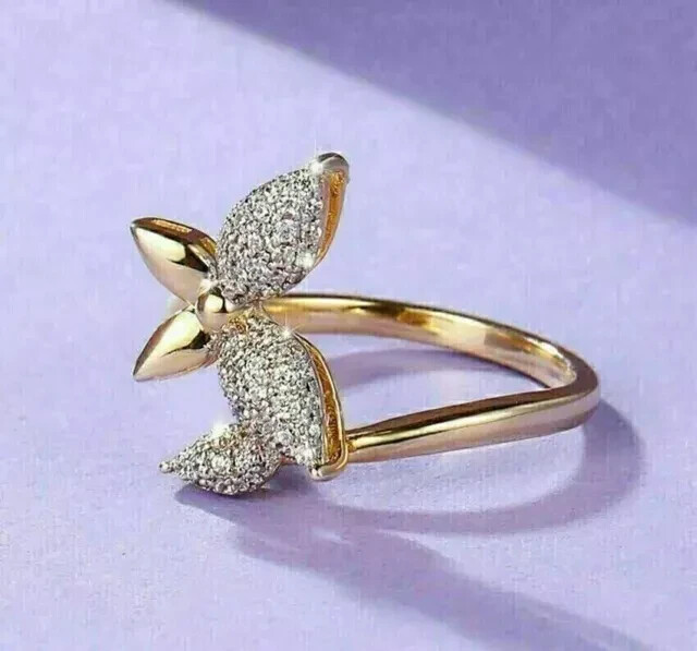 Elevate your jewelry collection with the exquisite 14K Yellow Gold Plated Butterfly Ring, a symbol of transformation and elegance. The ring features a dazzling 2 Ct Round Cut Lab Created Diamond, prong-set to capture every ray of light. Crafted with precision, the diamond boasts a clarity grade of VVS1, ensuring a near-flawless appearance that will mesmerize any admirer. Designed with love and attention to detail, this women's ring is available in all sizes, ensuring a perfect fit for every hand. The sterling silver base, coated with a lustrous 14k yellow gold plating, provides both durability and a classic aesthetic. Whether it's for an anniversary or to express your affection, this ring is a timeless choice that promises to be a cherished addition to any collection.