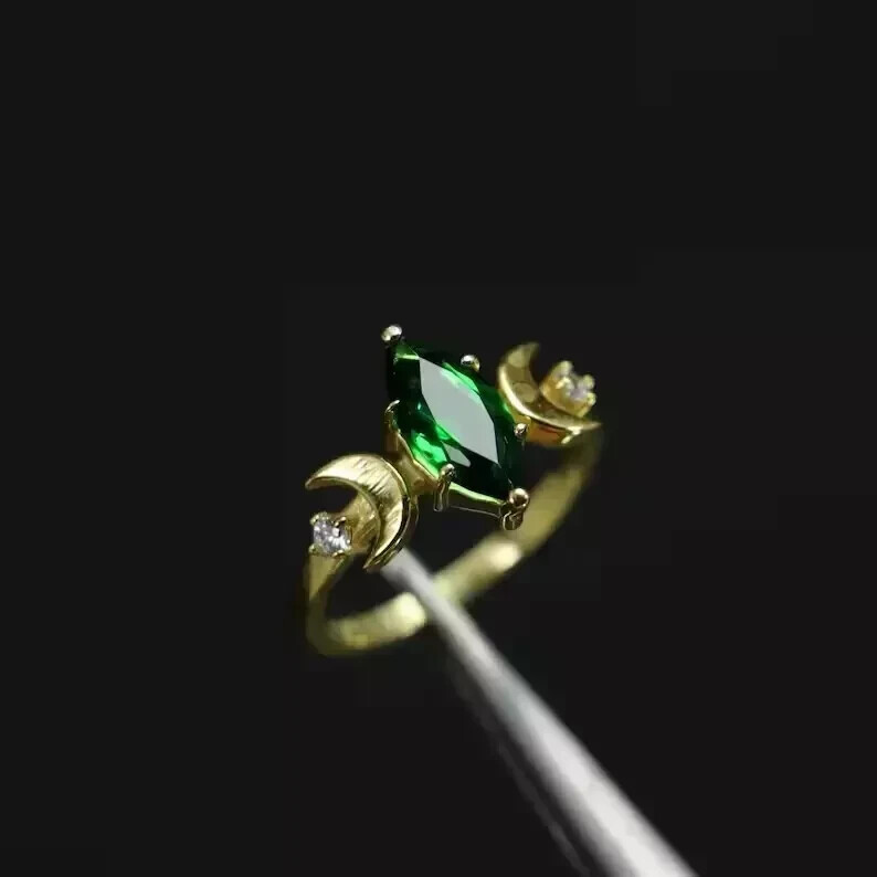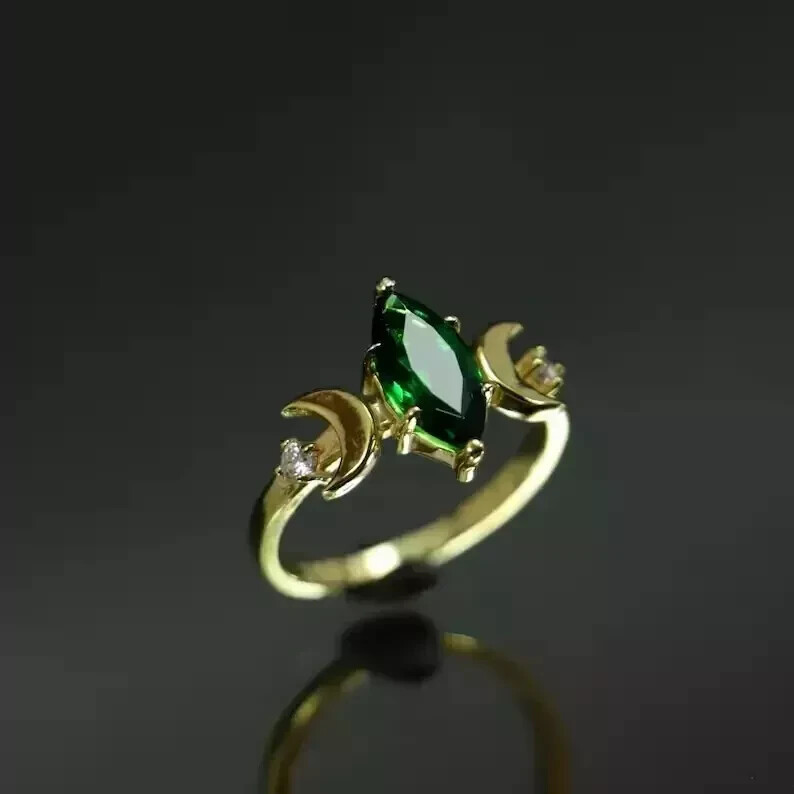 Crafted for elegance and affection, this 14K yellow gold plated ring is a testament to timeless design. Featuring a striking marquise-cut lab-created green emerald as its centerpiece, the piece captures the light with every movement, symbolizing the wearer's love for luxury and sophistication. The emerald's rich green hue and VVS1 clarity grade ensure that it stands out with a presence that's both captivating and refined. The ring's meticulous craftsmanship is evident in its excellent cut grade, complemented by a solid gold pattern that provides a classic touch. Available in all ring sizes, this piece can be personalized to fit any occasion, whether it's an anniversary or a promise of commitment. With its commitment to quality and style, this ring promises to be a cherished addition to any jewelry collection.