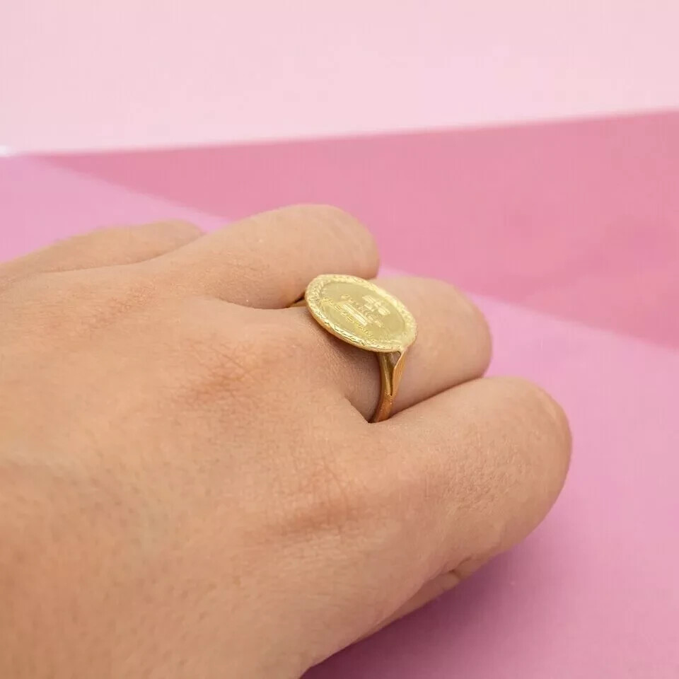 0.30 Ct Baguette Lab-Created Ruby Love medal AUGIS Ring 14K Yellow Gold Plated
