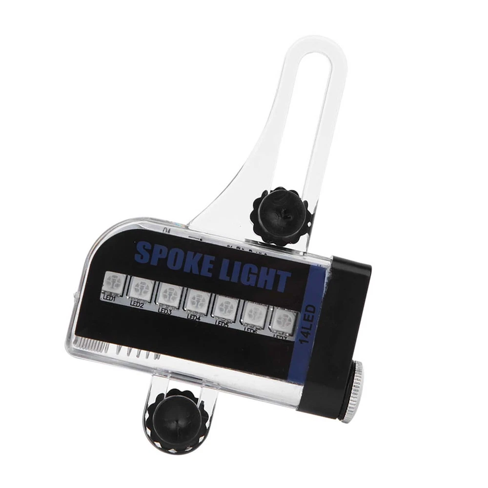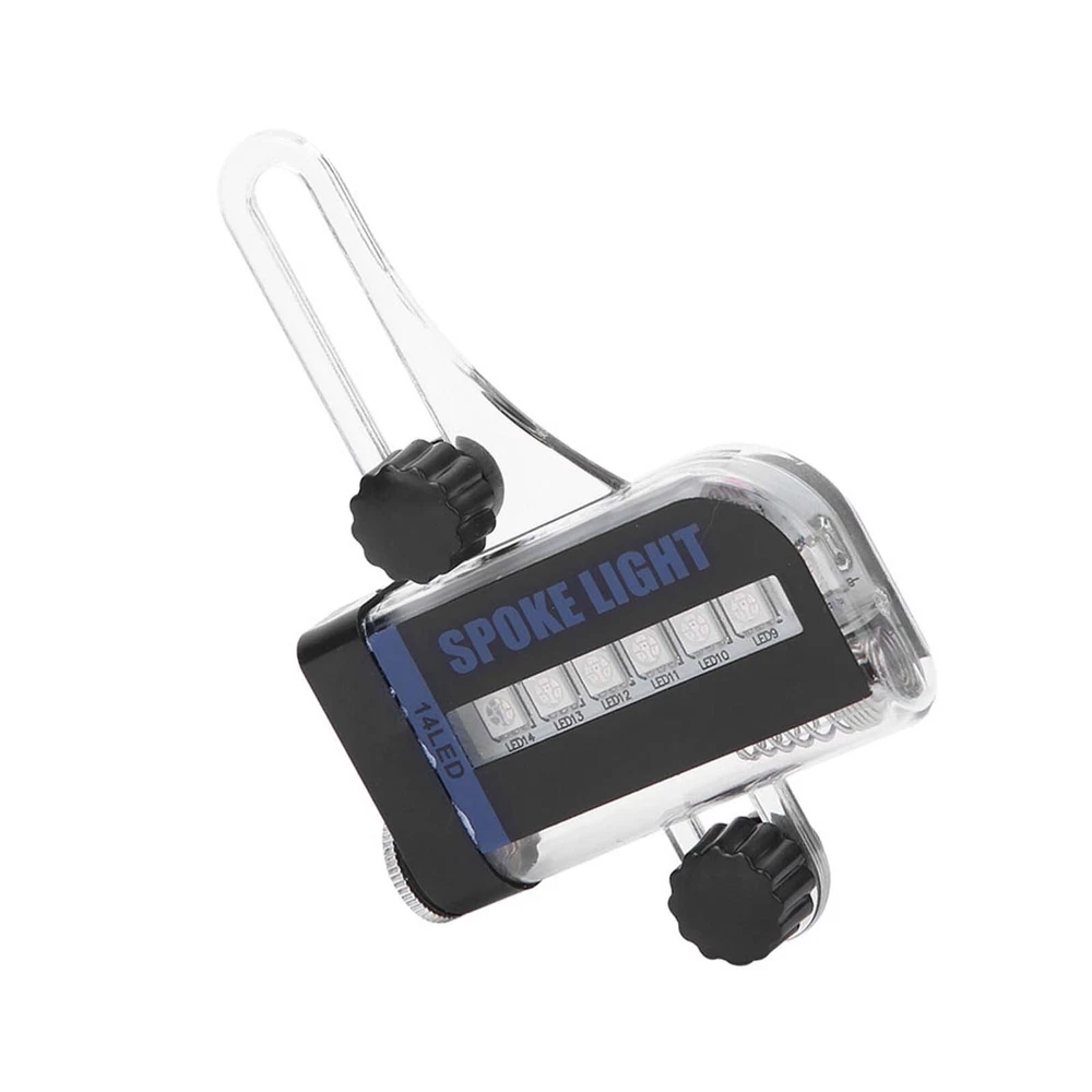 Feature: 1. Suitable for full-size steel wire models, including disc brake and V brake. 2. 14LED RGB light, good brightness, energy saving, long service time. 3. Switch by manual and dynamic mutual control. 4. Energy saving mode, a lamp can change 30 patterns, 4 seconds to change. Waterproof grade is IP6. 5. Wonderful accessory for mountain bike. Specification: Item type: Bike Spoke Light Condition: 100% brand new Material: plastic Weight: Approx. 49g Color: As picture shown Battery: 1 x AAA battery(not included) Waterproof grade: IP6 (immersion is not supported) Package List: 1 x Spoke Light Note: Not suitable for wide strip and sparse spoke bike.