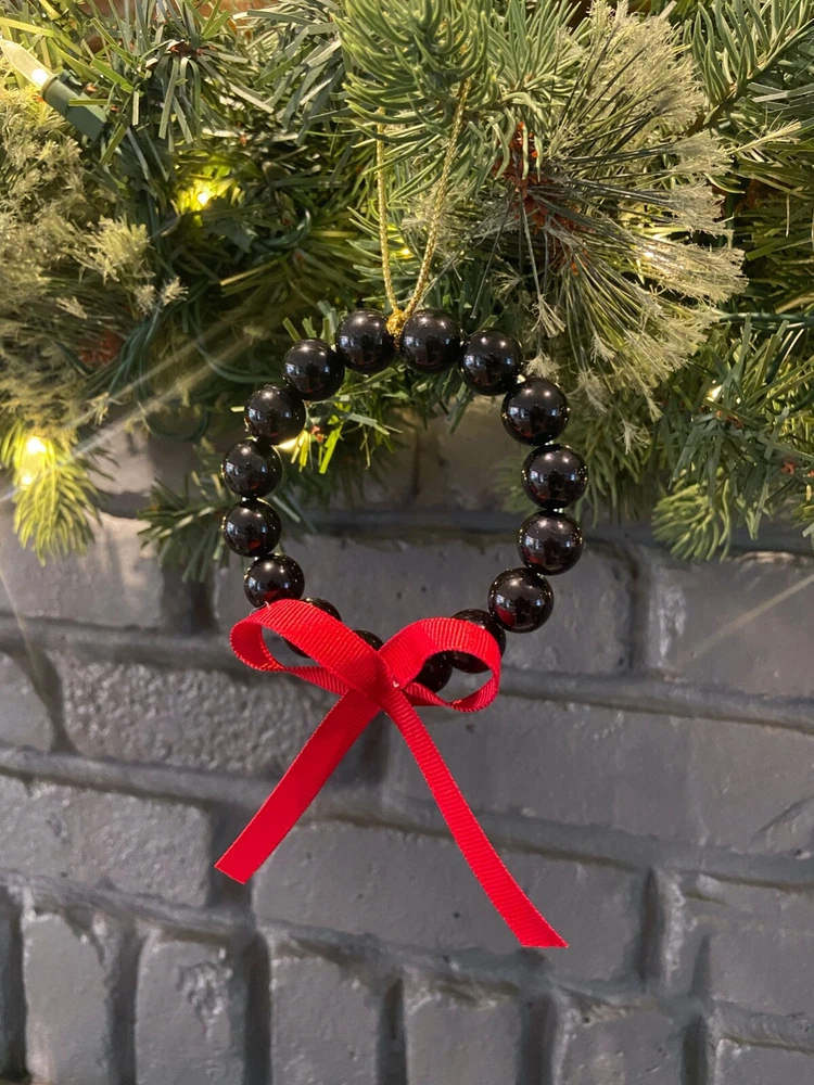 D R E A M P A R T Y C R E A T I O N S Thank you for visiting us: 14MM Pearls MINI Wreath Tree Ornament Choose Design & Package Amount Mini Wreath Ornament Measures 3-1/4" in Diameter. Choose from 3 designs. Each designed with a 3/8" Grosgrain Bow. Add a touch of elegance to your holiday décor with this beautiful 14MM gold pearls mini wreath tree ornament. Choose from a variety of designs and package amounts to create the perfect addition to your home Holiday Decor. Made from quality acrylic Pearls, this ornament is sure to last for years to come. Whether you're looking for a unique gift or simply want to add some festive flair to your own space, this mini wreath tree ornament is the perfect choice.